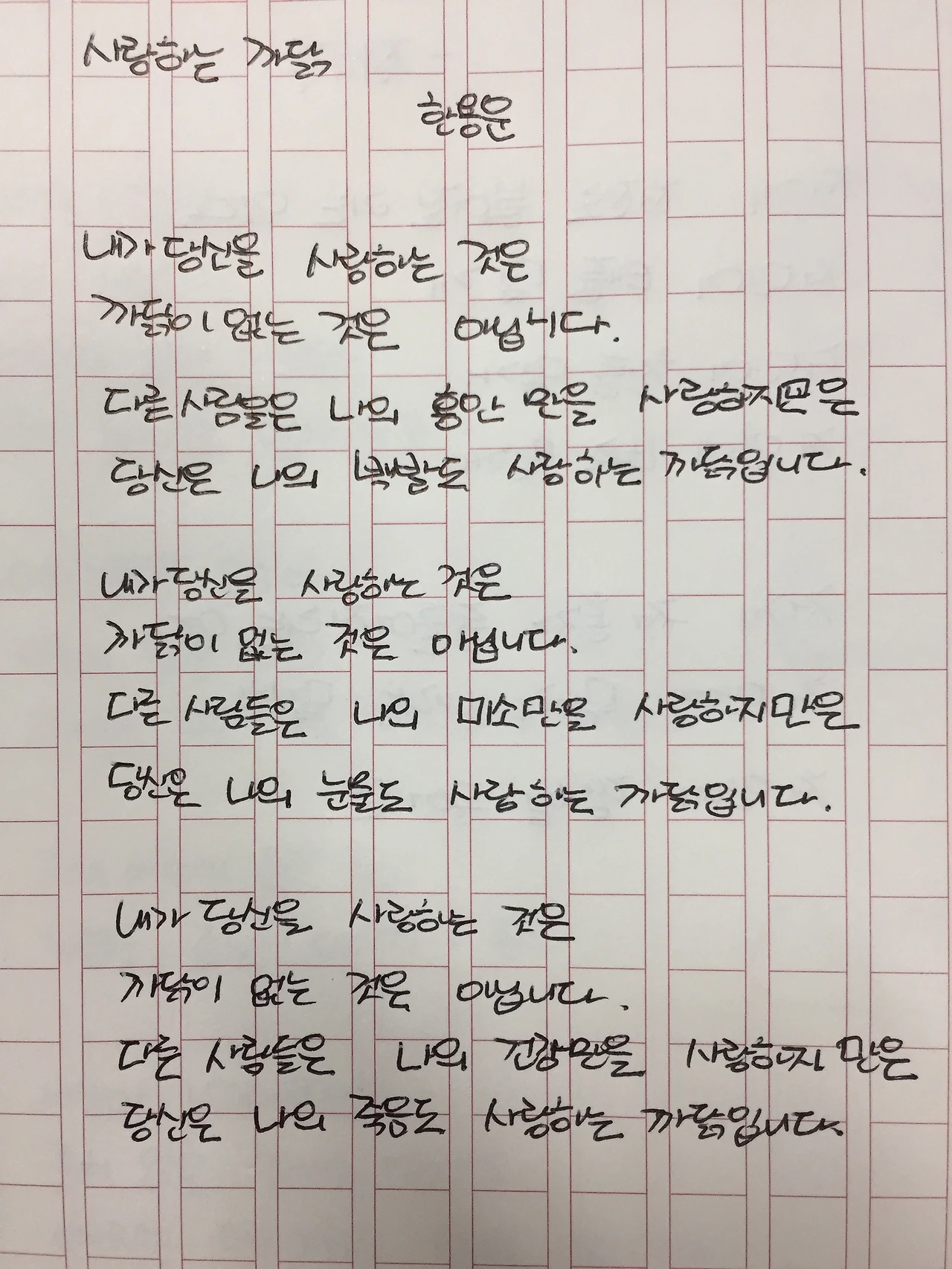 당신은 나의 눈물도 사랑하는 까닭입니다.
