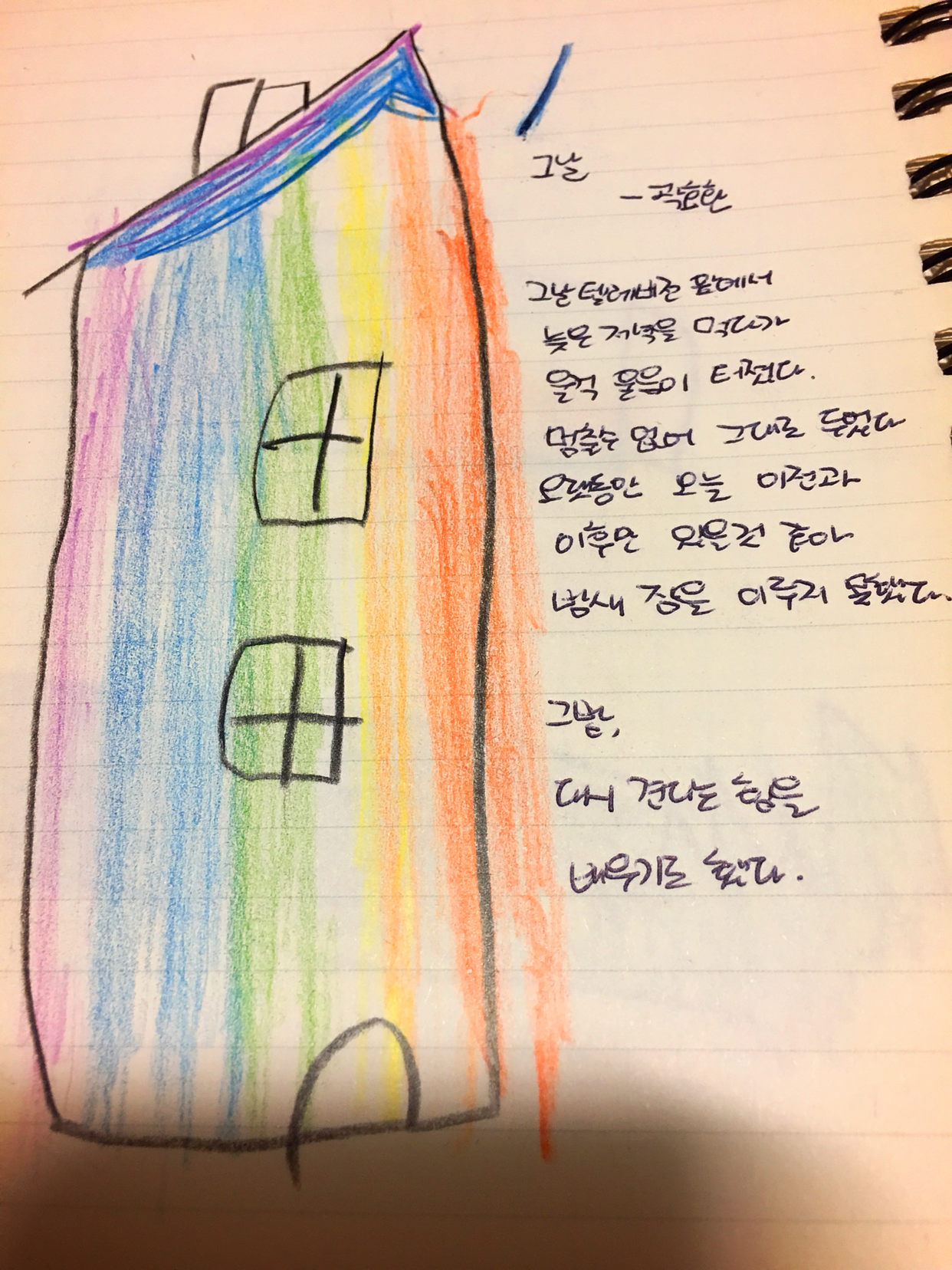 [0318] 060_그날 by 곽효환그날 텔레비전 앞에서 늦은 저녁을 먹다가 울컥 울음이 터졌다멈출 수 없어 그대로 두었다오랫동안 오늘 이전과 이후만 있을 것 같아밤새 잠을 이루지 못했다 그밤, 다시 견디는 힘을 배우기로 했다#1일1시 #100lab