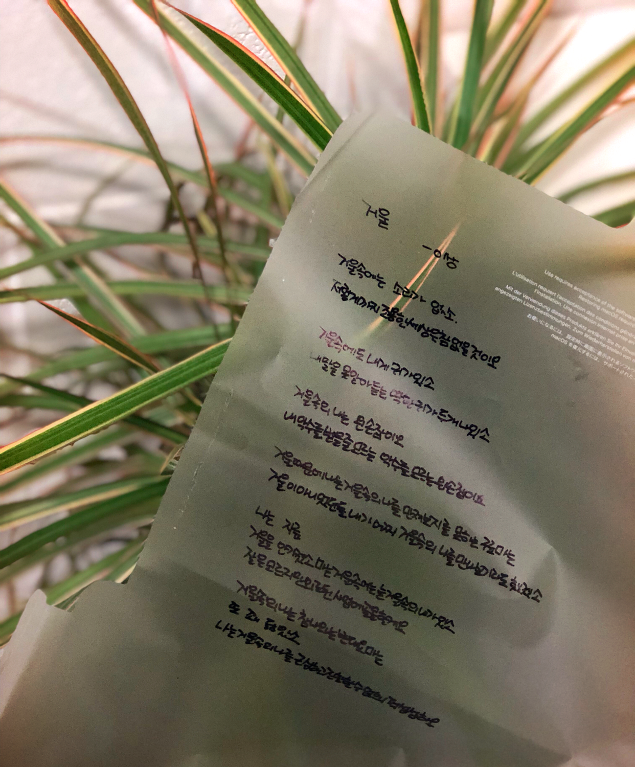 나는거울속의나를근심하고진찰할수없으니퍽섭섭하오