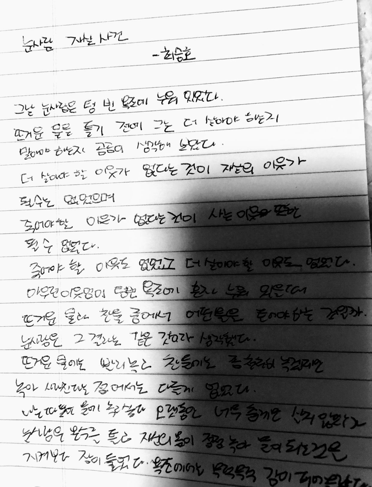 죽어야 할 이유가 없다는 것이 사는 이유 또한 될 수 없었다