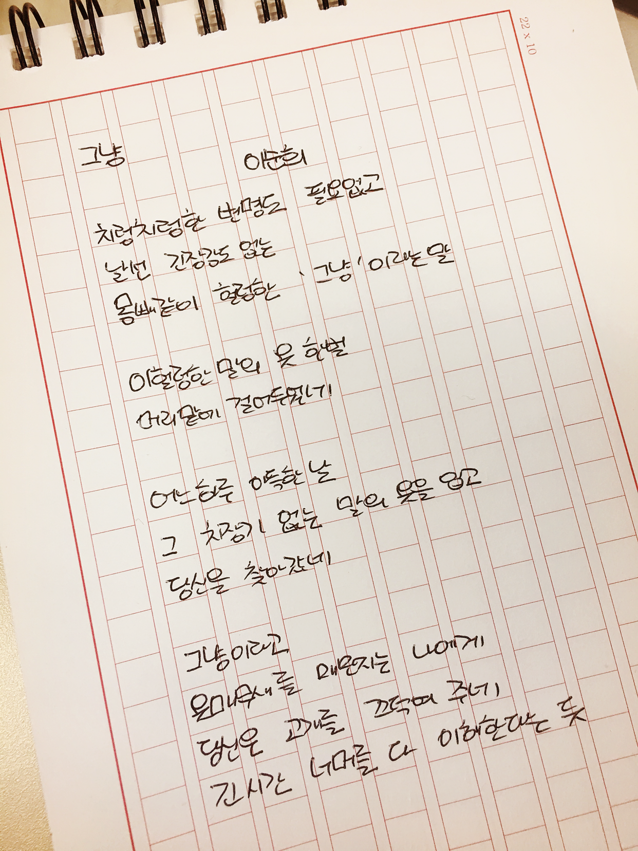 [0410]083_그냥 by 이순희치렁치렁한 변명도 필요 없고날 선 긴장감도 없는몸빼같이 헐렁한 '그냥'이라는 말이 헐렁한 말의 옷 한 벌머리맡에 걸어 두었네어느 하루 아득한 날그 치장기 없는 말의 옷을 입고당신을 찾아갔네그냥이라고옷매무새를 매만지는 나에게당신은 고개를 끄덕여 주네긴 시간 너머를 다 이해한다는 듯#1일1시 #100lab