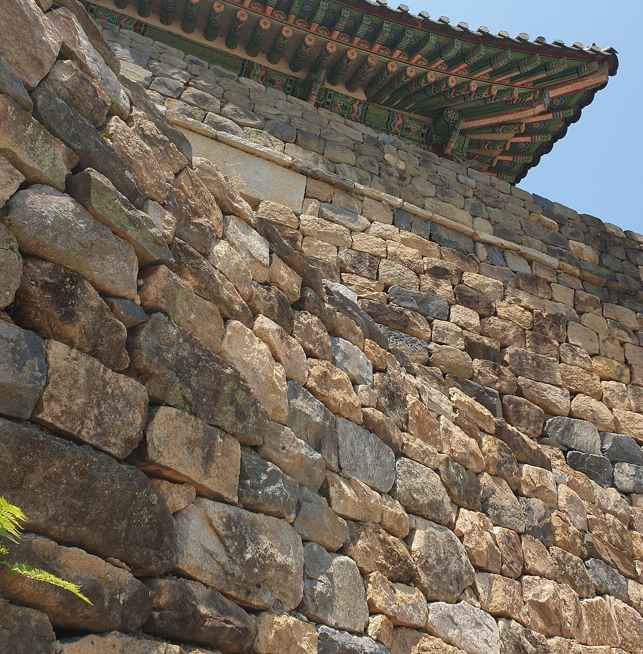 강바람이 시원한 공산정에 앉아 땀을 식히는데 문득 단청에 눈길이 갔다. 백제 시대 산성의 누각인데 단청이? 그때도 단청 기술이 있었나? 공산정은 백제의 건축물이 맞을까? 슬쩍 자료를 찾아보니 선조 36(1603)년에 공산성 공북루를 신축하고 그 뒤로 여러 차례 개축이 이어졌다고 한다. 이곳 공산정과 관련된 기록도 18세기 후반에 들어서야 등장한단다. 돌로 쌓은 석축도 마찬가지다. 그러니까 어떤 돌은 성도 없는 백제 사람이 쌓은 것이고 어떤 돌은 임진왜란 이후 김 서방, 이 서방이 다듬어 쌓은 것이다.