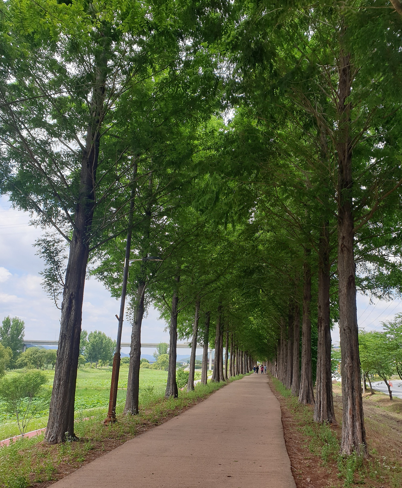 벚꽃 피는 봄도 좋고 단풍 드는 가을도 좋지만 정안천은 뭐니 뭐니 해도 여름이 최고다. 길게 이어지는 메타세쿼이아가 푸른 터널을 이루고 지천으로 피는 연꽃이 우아한 아름다움을 뽐내기 때문이다.
