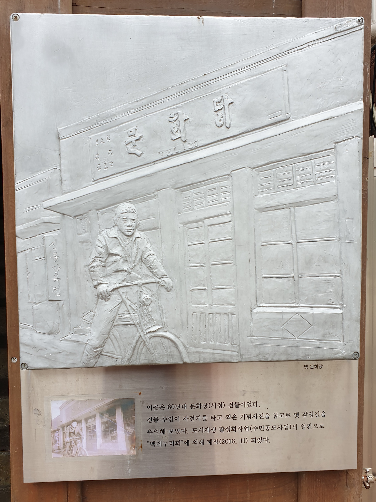 ‘가가상점’, ‘Cream of X'’, ‘반죽동 247’ 등 요즘 공주와 관련된 SNS에 가장 많이 언급되는 장소들이 대부분 감영길에 위치한다. 어찌 보면 칙칙하다 느낄 수 있는 원도심의 분위기를 밝고 세련되게 바꿔주는 곳들이라 할 수 있다. 그러다 보니 휴일이면 공주를 찾아온 여행객들을 가장 많이 만나는 장소이기도 하다. 하지만 개인적으로 더 애정이 가고 눈길을 사로잡는 곳은 이런 곳들이 아니다. 참고서·잡지·단행본 등을 파는 오래된 서점, 민화·손글씨·국악기 등을 가르치고 작업하는 공방, 학생백화점, 작은 미술관 등등 대도시에는 사라져 버린 추억 속의 장소들이 이곳에 남아있다. 어릴 때 엄마 손잡고 다녔던 인사동, 종로, 삼청동의 모습을 다시 만나는 느낌이라고 할까.