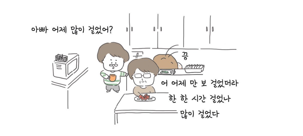 매일 아침이면 이렇게 시시하고 별거 아닌 이야기들을 신이 나서 얘기하고 또 그걸 서로 흥미진진하게 듣고 있는 가족들. 새로울 것도 특별히 재미난 일도 없는 비슷한 하루를 오늘도 그렇게 살아간다. 그러다 갑자기 이런 생각이 들었다.