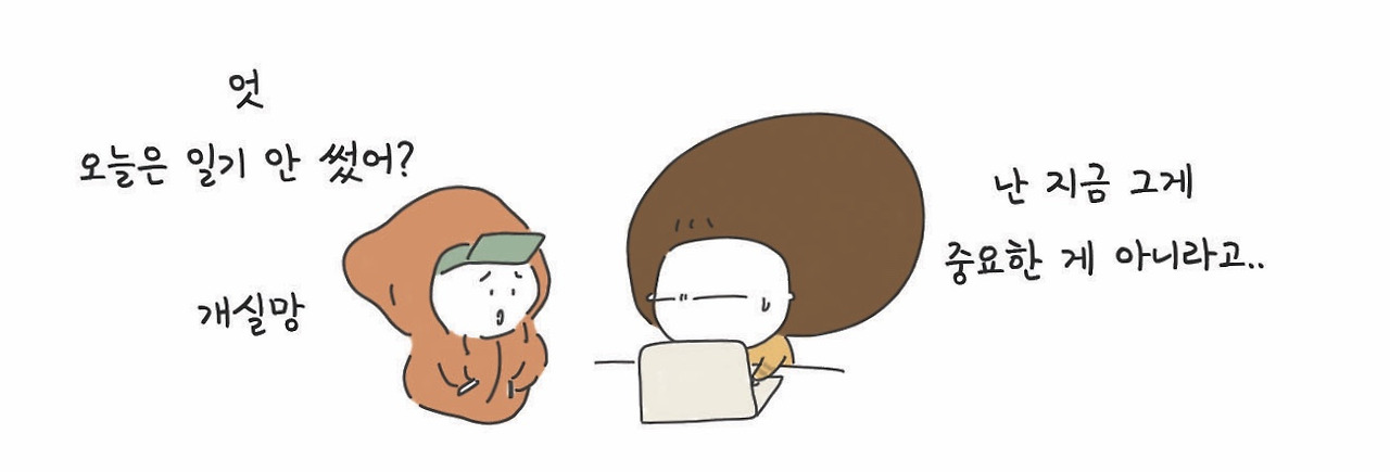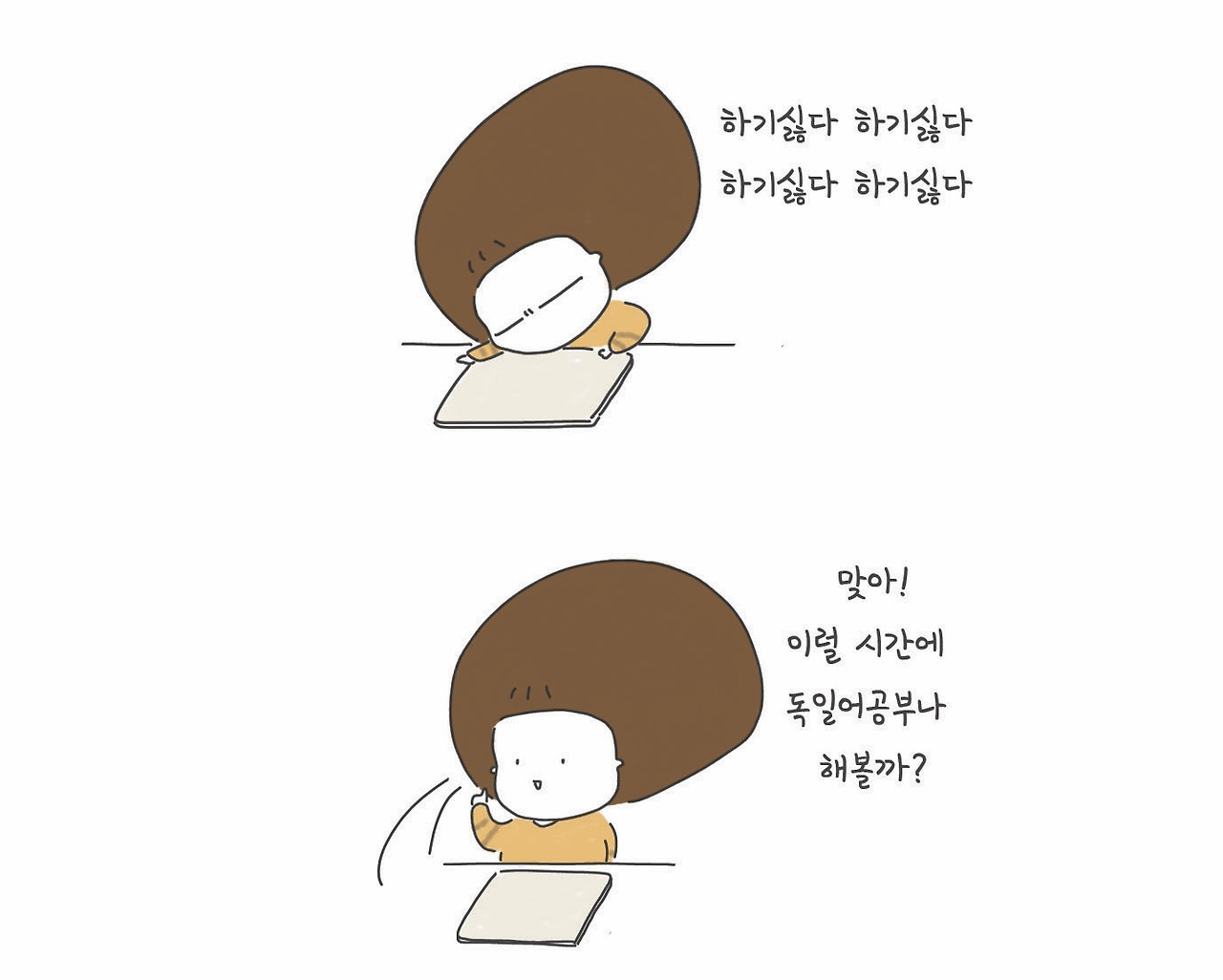 논문을 쓰기 위해 하루 종일 책상 앞에 앉아 있지만 도저히 집중이 되지 않았고 한참을 그렇게 있다 보면 나도 모르게 종이 위에다 끄적끄적 그림을 그리곤 했다. 어차피 누군가에게 보여주기 위한 것도 아닌 데다 대충 자료들을 프린트한 종이 끄트머리에다 그렸기 때문에 거리낄 게 없었다. 처음에는 눈 앞에 있는 펜이나 컵, 핸드폰 같은 소품들을 하나씩 그리던 게 점점 책상이 되었고 방 전체로 커졌다. 그러면서 쓰게 된 것이 그림일기였다. 하루에 있었던 일을 독일어로 한 문장씩 쓰고 그림으로 빈 공간을 채워가면서 어설프게 하나하나 그리던 게 바로 지금 이 책에 등장하는 그림 캐릭터가 되었다.