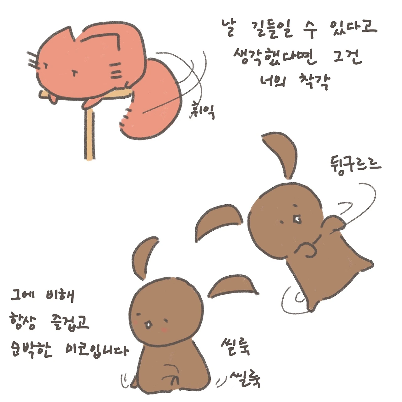 작가 & 일러스트레이터. [잘할 거예요, 어디서든], [나만 그랬던 게 아냐], [그러게, 굳이 왜]를 쓰고 그렸습니다. 독일에서 강아지를 산책시키며 사부작 작업하고 있어요.