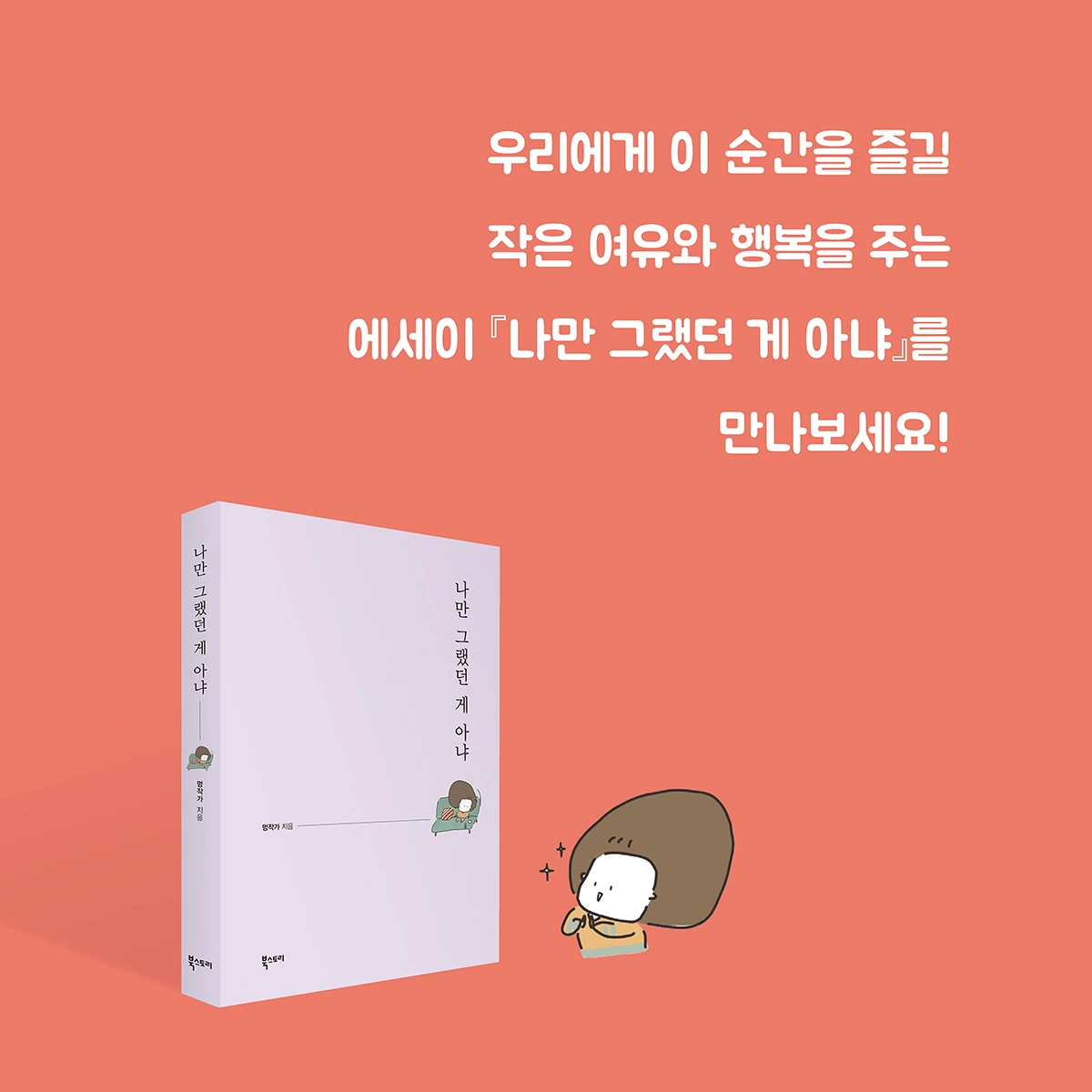 안녕하세요? 오랜만에 이렇게 글로 인사드려요. 멍작가입니다. 첫 책 ‘잘할 거예요 어디서든’을 출간하고 2년여 만에 두 번째 에세이 ‘나만 그랬던 게 아냐’를 내게 되었어요. 무려 어제 나온 따끈따끈한 책입니다 :)