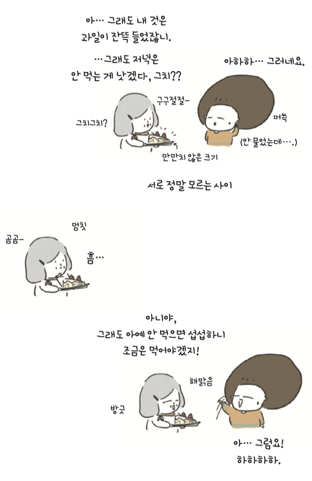 동그란 테이블에 제이미와 나란히 앉아 달콤한 체리잼과 생크림 그리고 바닐라 아이스크림이 소복이 올려 있는 와플을 사이좋게 나눠먹고 있는데, 문득 제이미가 말했다.