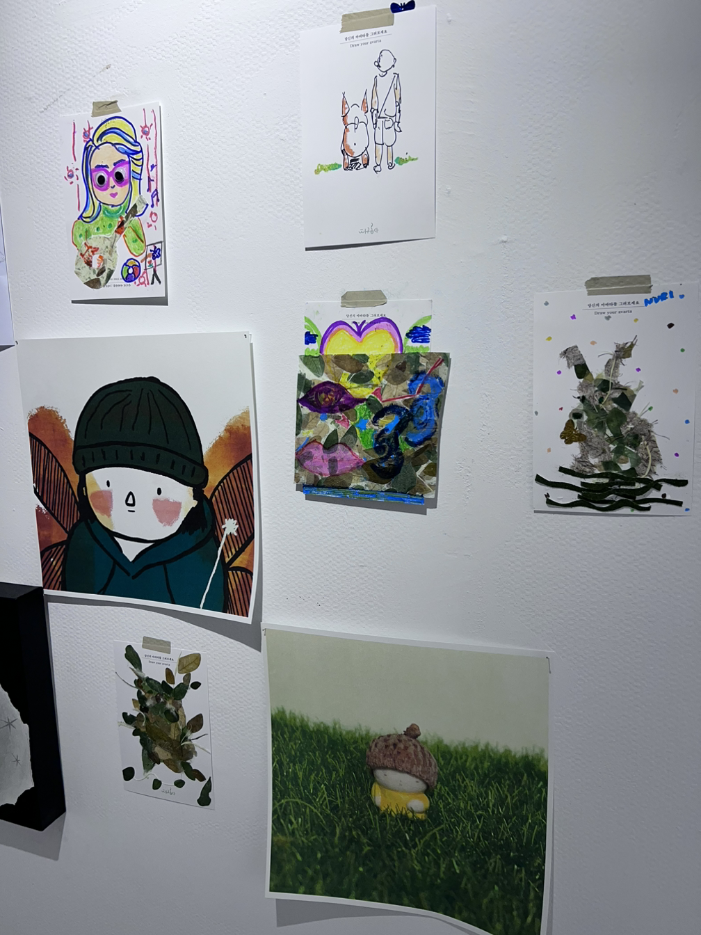 전시기간 동안 방문객들이 자유롭게 참가할 수 있었던 아바타 체험 행사. 저도 초록요정과 누리 아바타 그림을 만들어 붙여놓았어요.