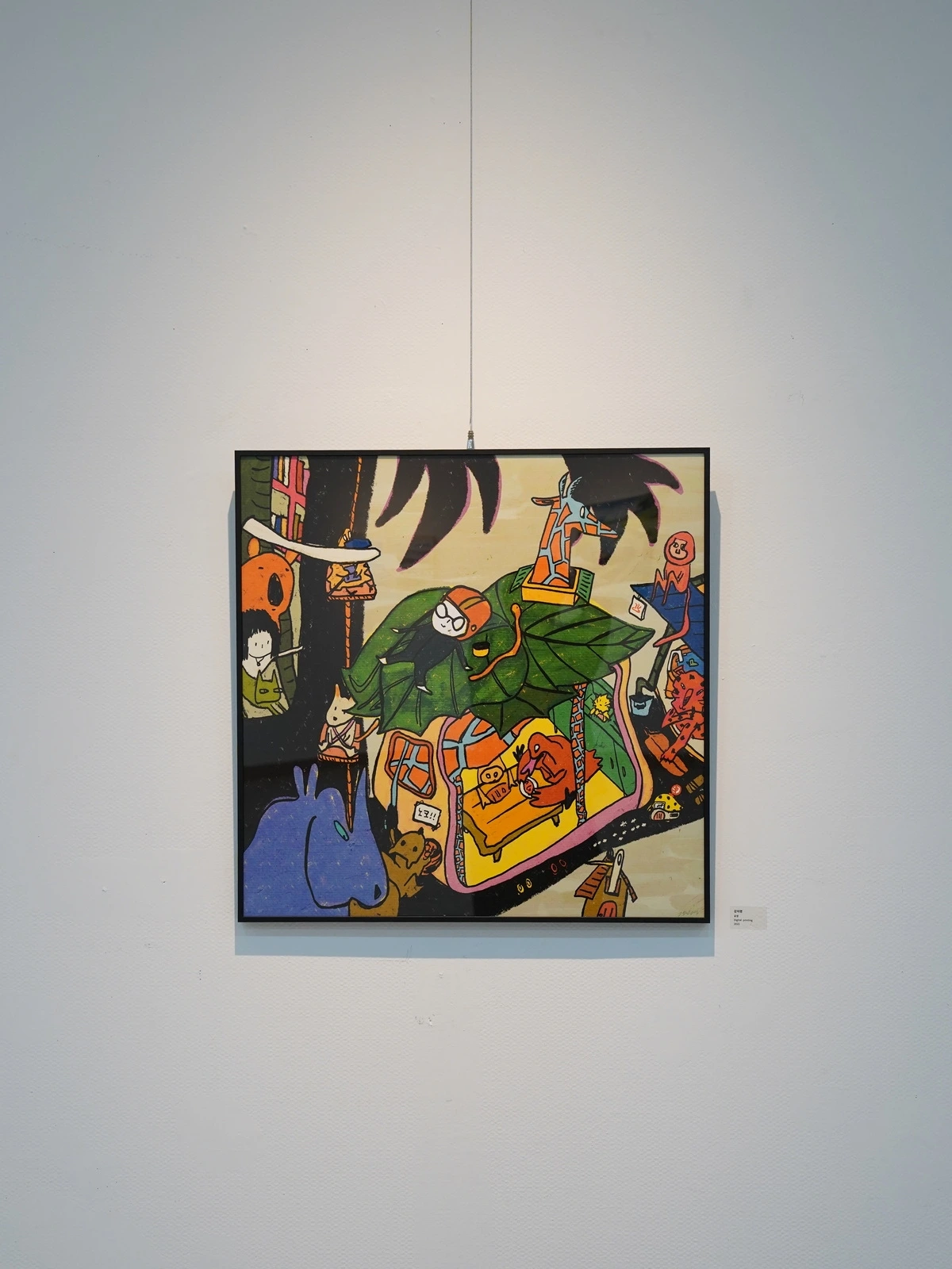 전 동물 그리는 걸 참 좋아합니다. 반려견 누리도 자주 그리는 편인데 이번 단체전에서는 다양한 동물들을 잔뜩 그리는 바람에 작업하는 내내 즐거웠답니다. 무시무시한 전쟁 후 태초의 지구로 돌아가 동물과 인간이 나무 위 오두막에서 공생한다는 상상을 그림으로 옮겨보았습니다. 평소 잘 쓰지 않는 색들을 쓰느라 조금 어색했지만 흥미로운 작업이었어요.