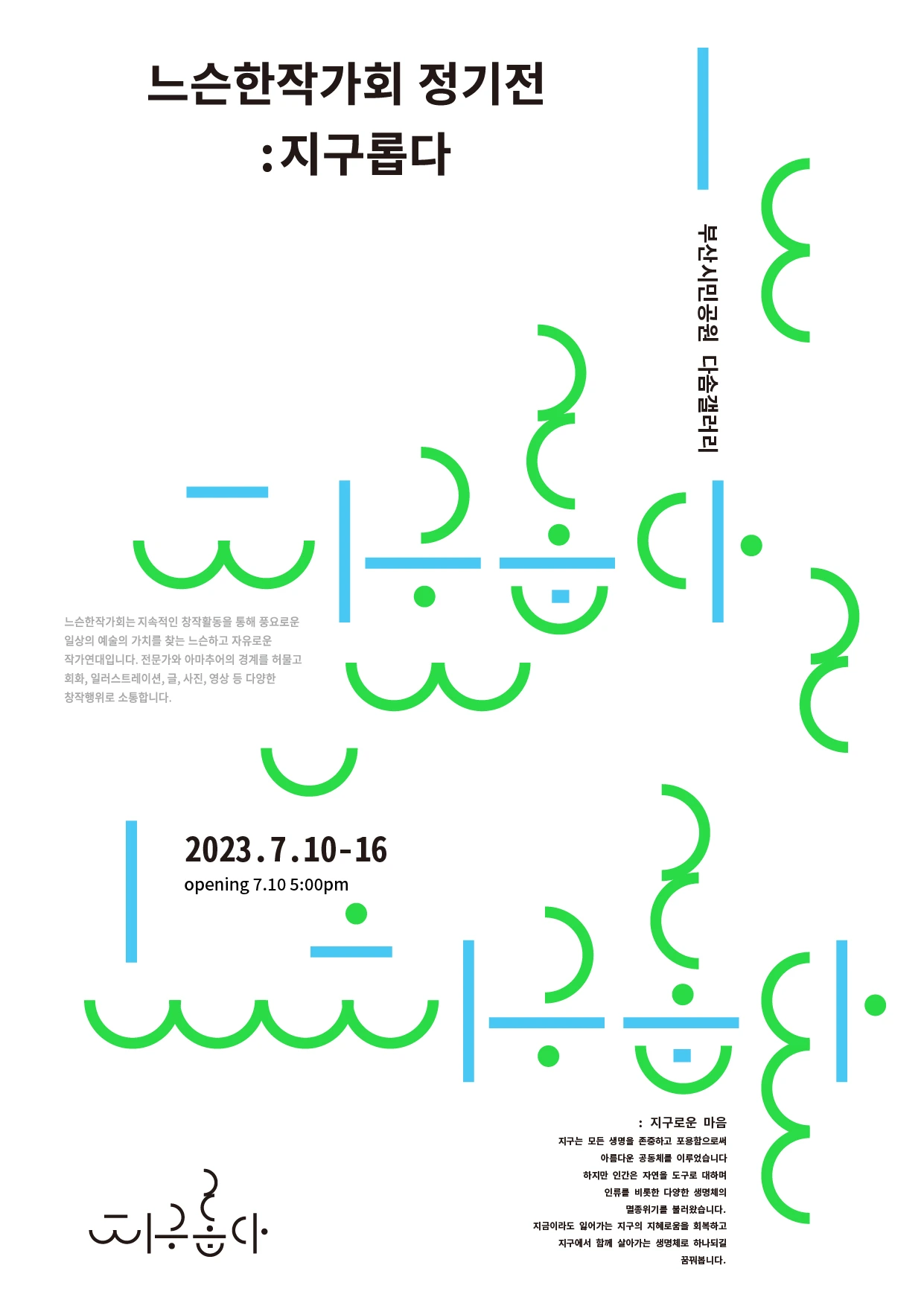 다양한 작업을 하는 작가들이 이름처럼 느슨하게 연대할 수 있는 모임이 있어서 꽤 든든한 마음이 듭니다. 그나저나 다음 작업을 시작해야 하는데 요즘은 왠지