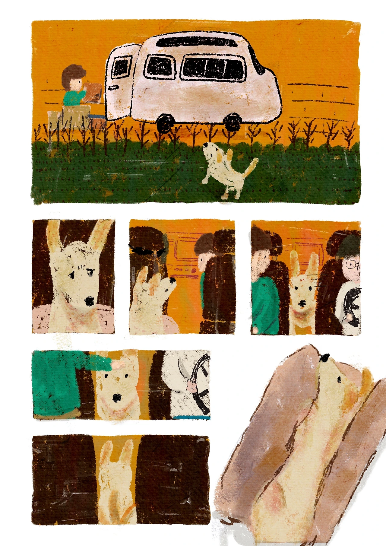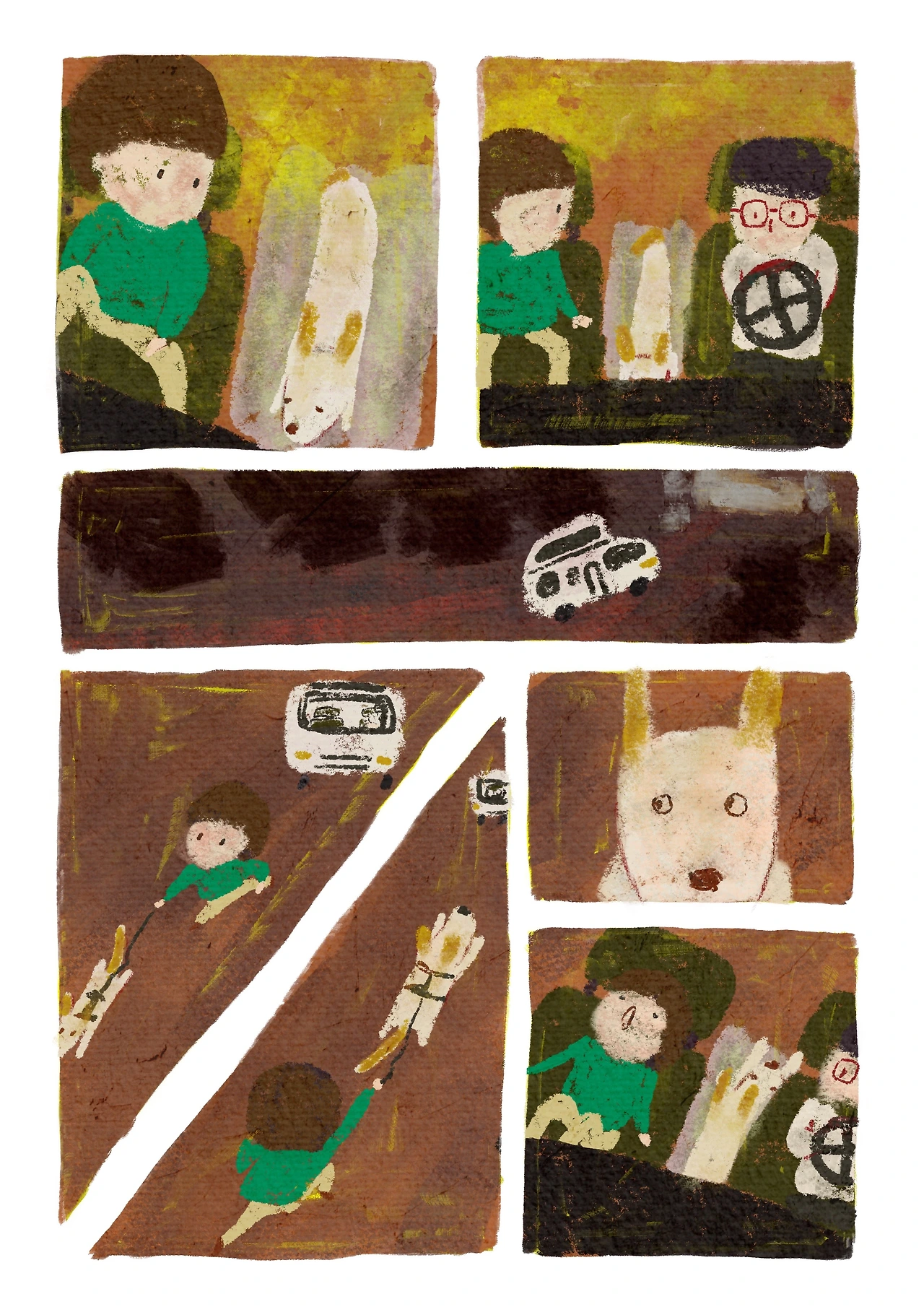 땡그랑 목줄을 집어드는 소리가 나면 그제야 꼬리를 열심히 흔들며 뛰어온다. 출발하는데 굳이 편한 뒷자리 침대를 놔두고 우리 가운데에서 가겠다는 저 강건한 의지란.