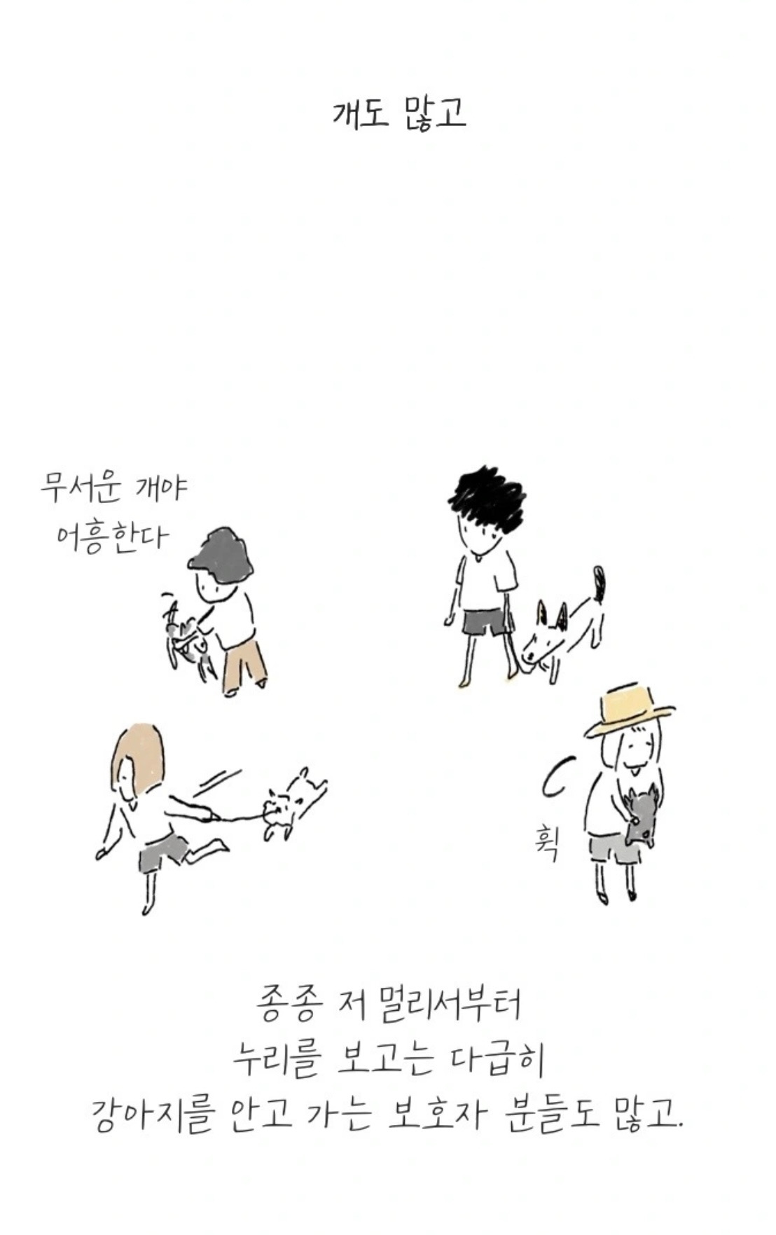 독일에서 한국으로 돌아와 반려견 누리와 함께 보낸 그해 여름 이야기를 만화로 그렸습니다. 한국의 여름은 저도 너무 오랜만이라 둘다 적응하는 데 꽤 시간이 걸렸어요. 지난 달에 연재가 마무리되었는데 전체 스토리는 알라딘 투비컨티뉴드에서 보실 수 있습니다.