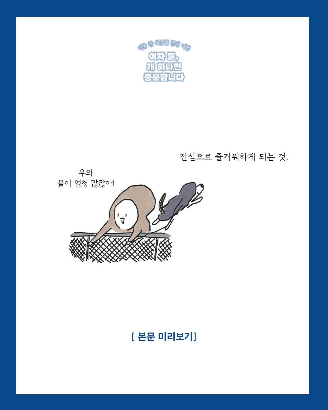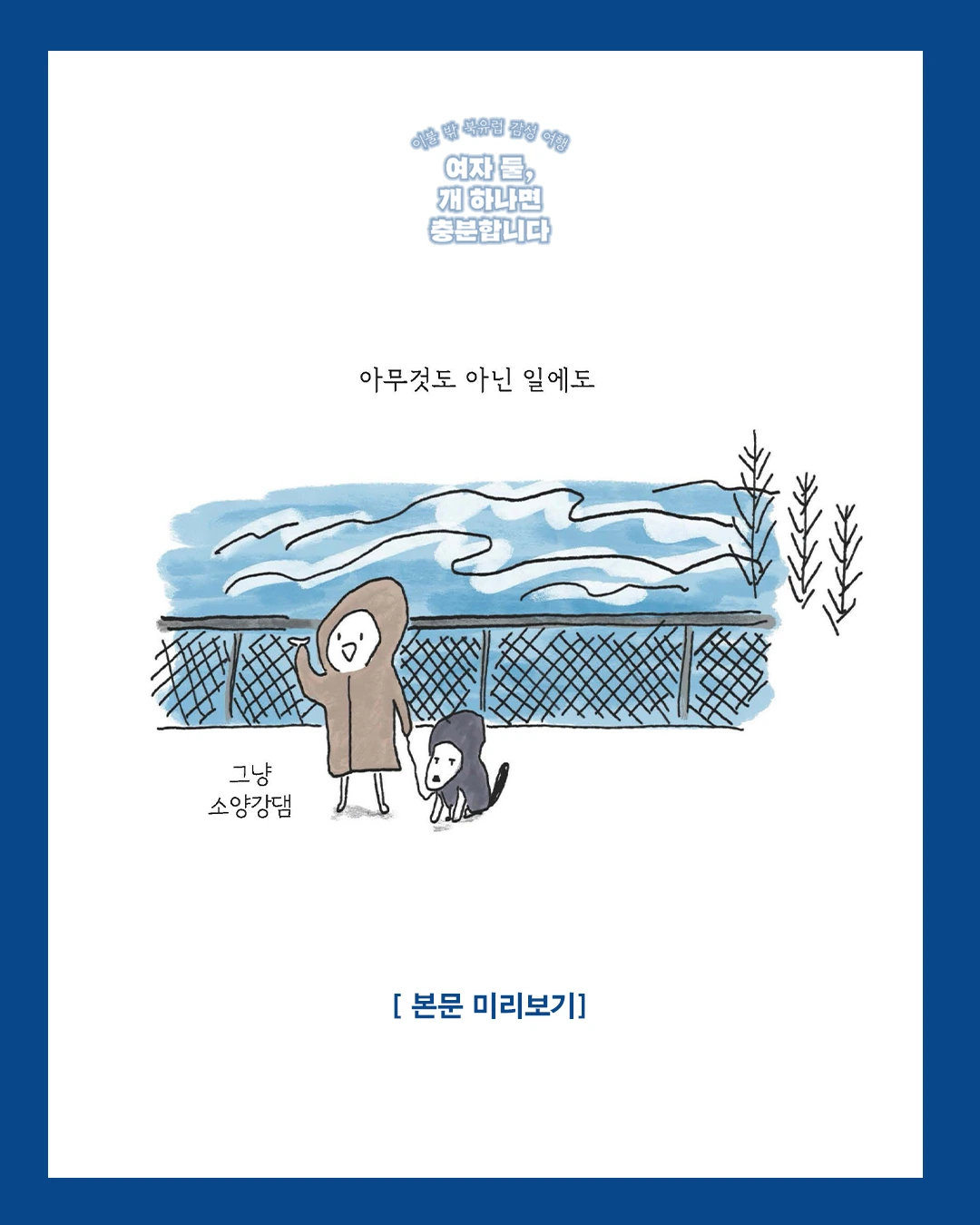 알라딘 투비컨티뉴드에서 연재했던 ‘셋이서 떠나는 북유럽 캠핑카 여행기’가 드디어 <여자 둘, 개 하나면 충분합니다>란 제목으로 출간되었습니다.