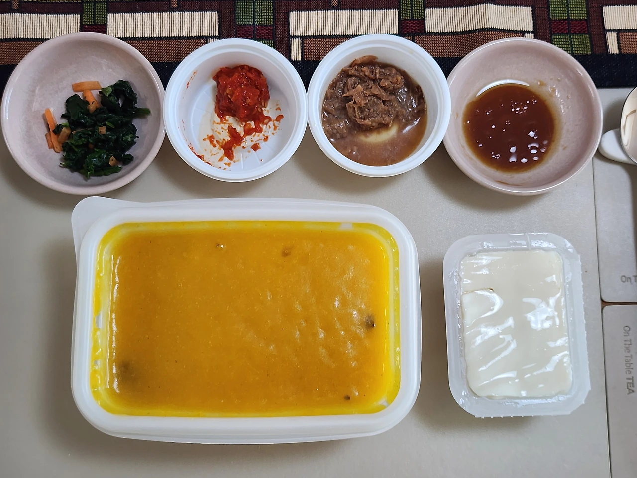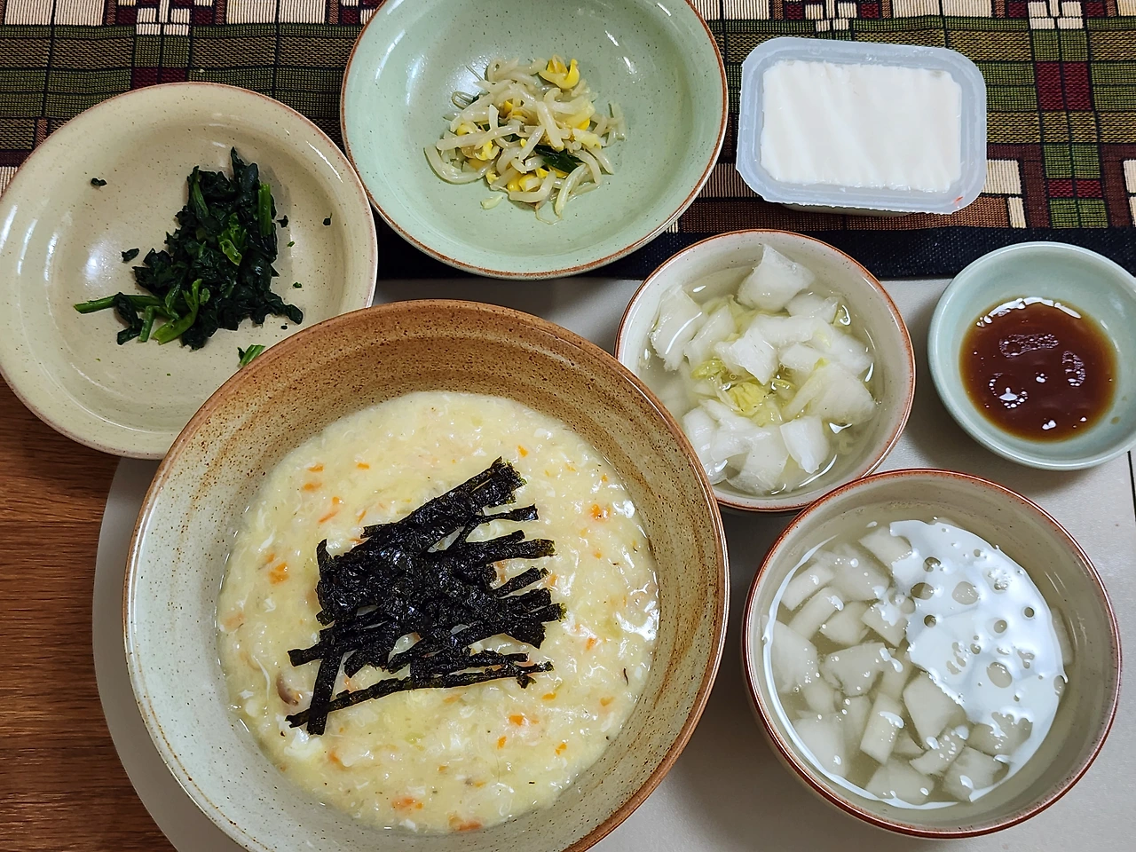 두부를 제외하곤 본죽 한상차림이다. 죽은 야채죽에서 벗어나 쇠고기야채죽을 준비했다.