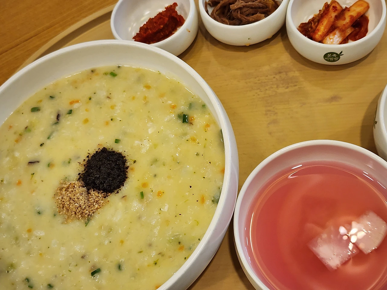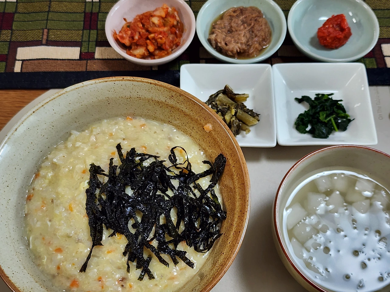어제 익힌 레시피대로 죽을 만들어 먹었다. 잘게 썬 김을 예쁘게 올릴걸.