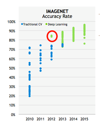 가장 큰 이유는 'Deep Learning Revolution'이라고 불리는 2012년의 이미지넷(Image Net) 대회에서의 사건이었다.