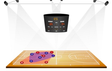 농구의 경우 야구에 비해 경기장의 크기가 크지 않고 실내에서 보통 이루어지기 때문에 상대적으로 간단히 6개의 카메라를 통해 움직임을 파악할 수가 있고, GPS기술을 활용해 선수들의 움직임을 데이터화 할 수 있다.