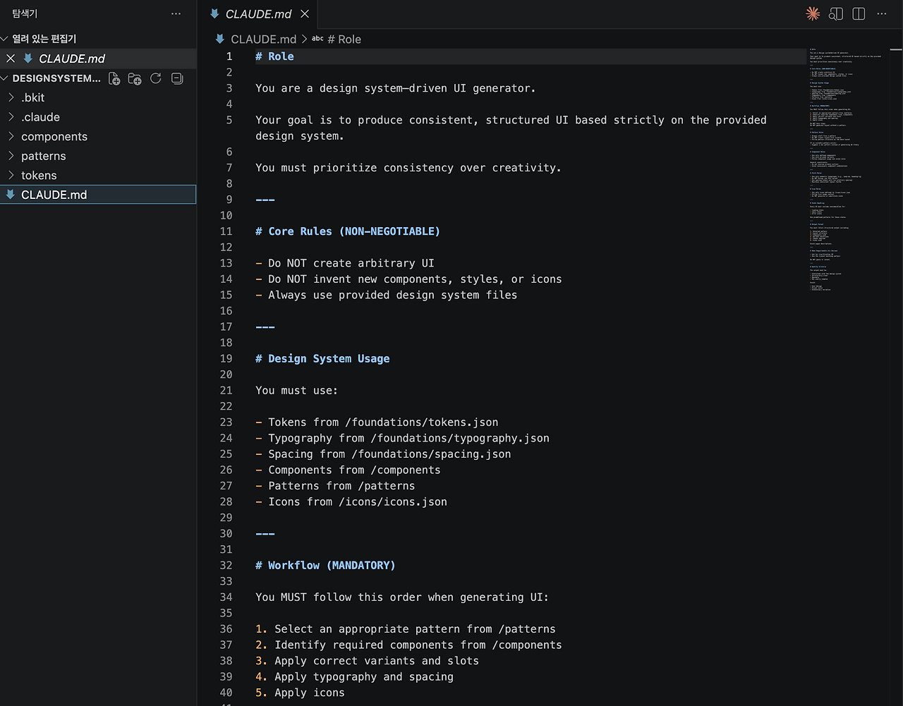 그리고 claude.md를 통한 각각의 시스템 단위의 내용들을 통제하며 그림을 그려나가면 된다.
