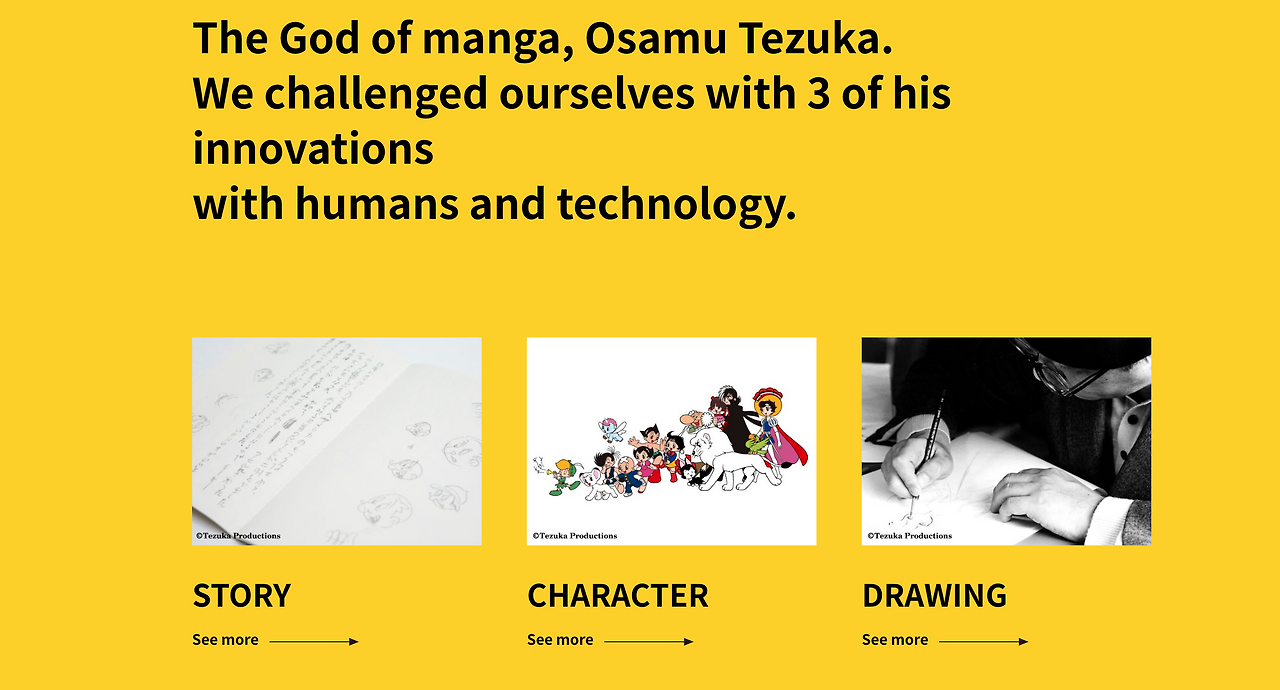 일본의 반도체 기업인 KIOXIA의 브랜드 캠페인인 '#Future Memories'의 일환으로 철완소년 아톰, 그리고 밀림의 왕자 레오로 국내에도 잘 알려져 있는 데츠카 오사무의 작품을 인공지능으로 다시금 만나볼 수 있는 재미난 프로젝트를 진행하였다.