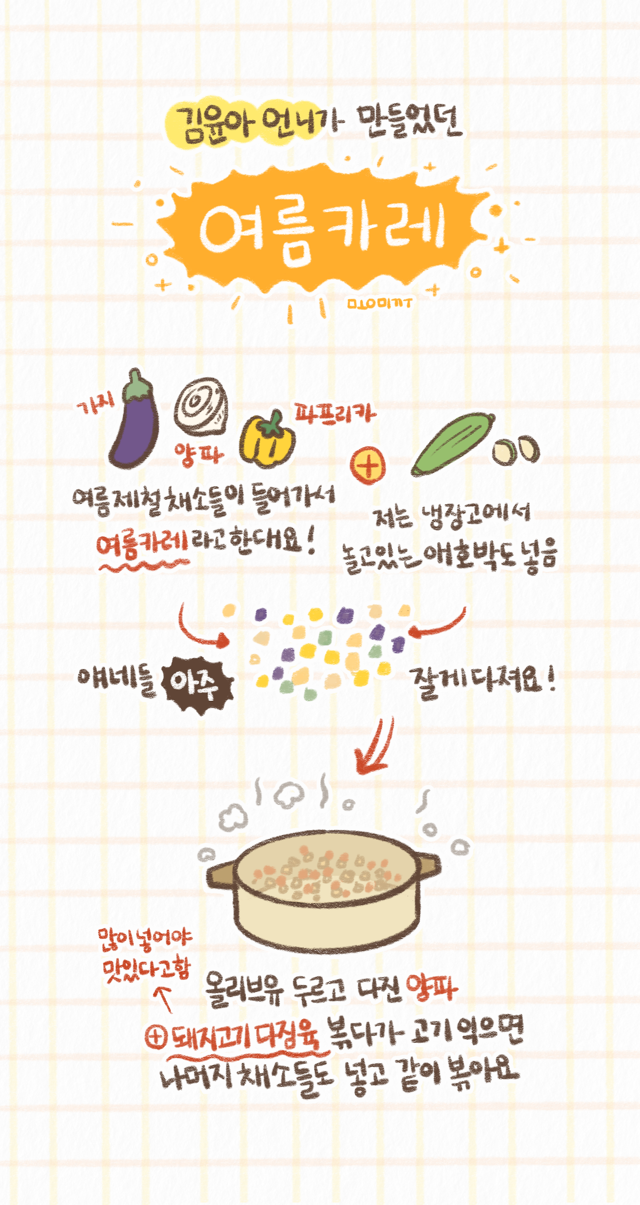 * 김윤아가 출연한 예능 <온앤오프> 45화는 티빙에서 보실 수 있습니다. 여름카레 만드는 부분 클립 영상은 여기!