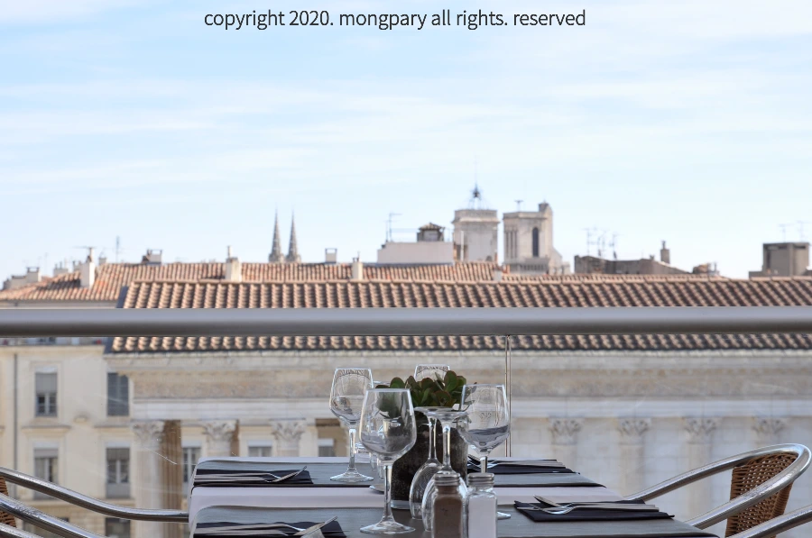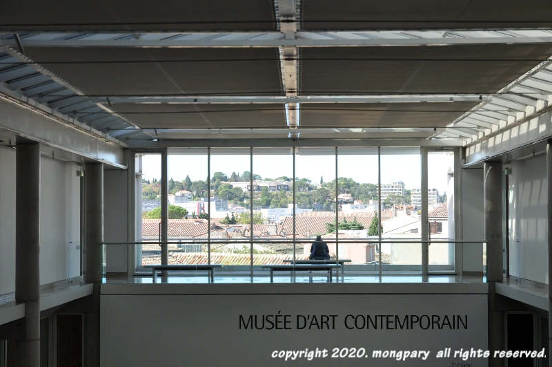 이 미술관의 백미는 단연코 <메종 카레>가 보이는 바로 이 최상층의 카페이다.