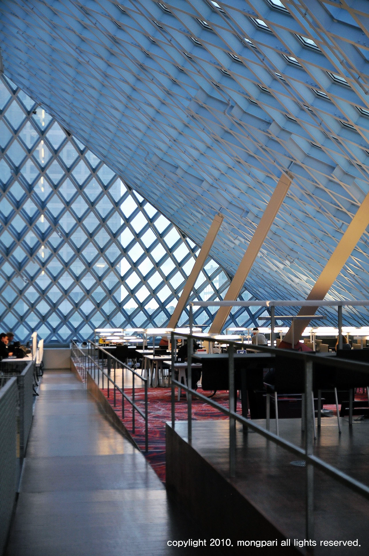 저층에는 도서관이 있고 그 위에 미술관 그리고 최상층에 카페 겸 레스토랑이 있는 복합건물이다.