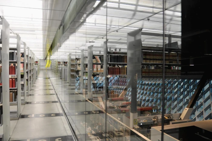 서가를 돌아다니면서 저절로 층을 내려온 건 연속적인 바닥판으로 이루어진 나선형 서고였기 때문이다.