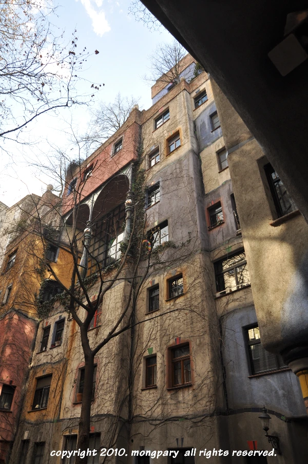 이제 그의 또 다른 작품, 공공임대주택인 훈데르트바서 하우스로...