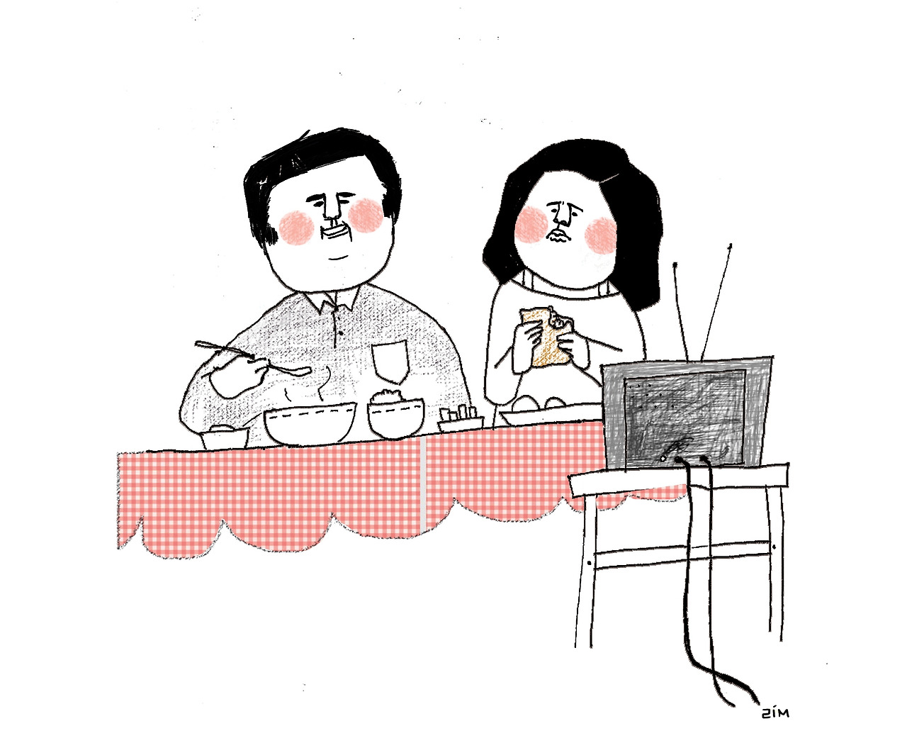 아부지와 나란히 앉아 아침을 먹는데