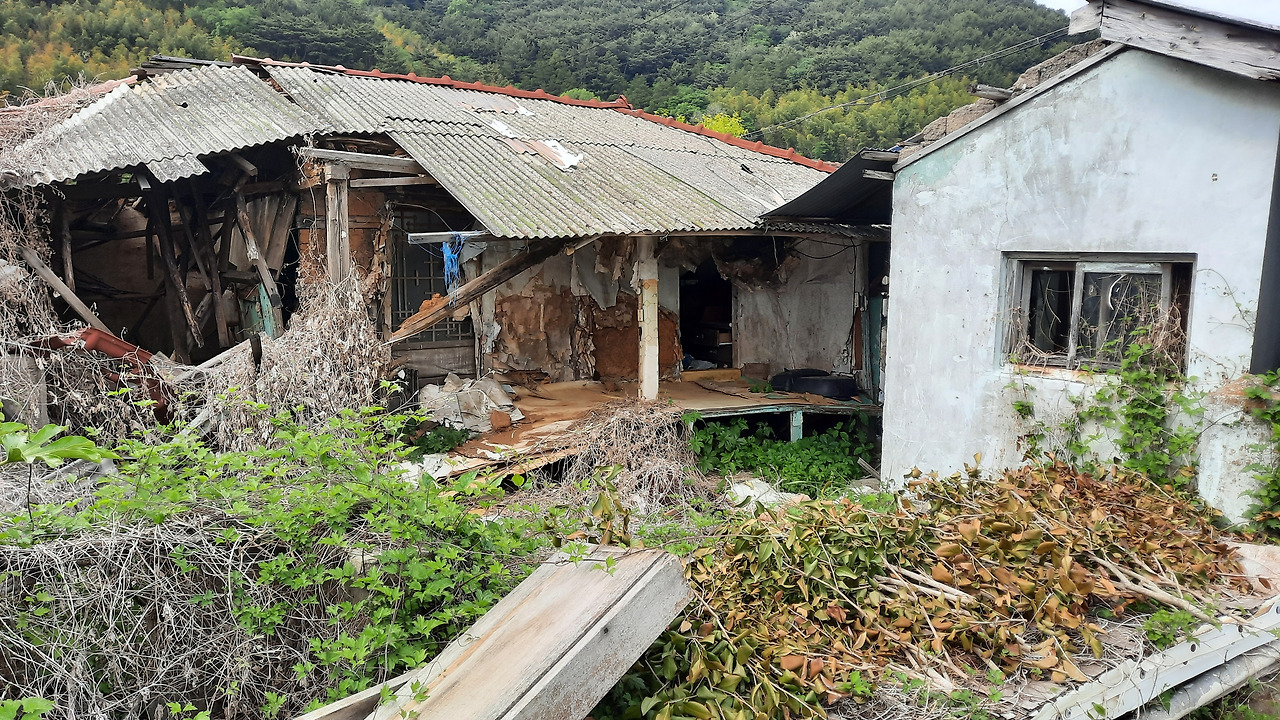 마치 망해버린 김약국의 집을 보는 듯해 기분이 묘했다. 금방이라도 김약국의 딸들이 걸어 나올 듯하다. 누가 살던 집일까. 모두 떠나고 혼자 살아내다 연고 없이 쓸쓸히 세상을 등졌을까. 저 쳐진 천장만큼 삶의 무게가 힘들진 않았을까.