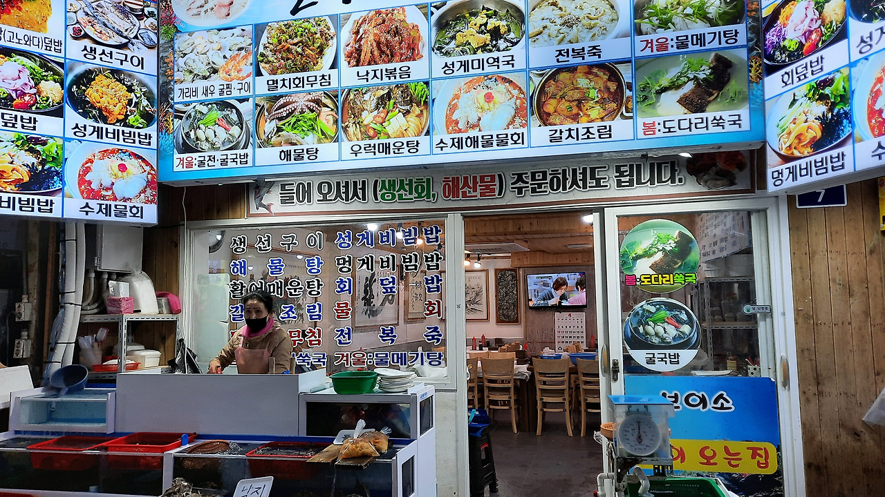 도착한 첫날 통영 활어 시장에 들러 멍게와 해삼 맛부터 보았다. 멍게와 해삼은 어릴 때 많이 먹어 가끔 집이 그리울 때 먹고 싶었다. 미국엔 냉동 멍게뿐이지만 그나마도 맛볼 수 있음에 위안을 삼고는 했다. 맛집을 찾고 할 것도 없이 숙소 아래 활어시장에만 가도 각종 해산물 식당들이 널려있었다.