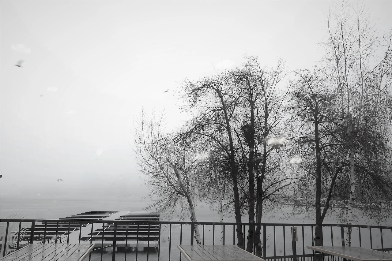 거센 빗줄기가 호수를 두드리며 오케스트라를 연주한다. 바람의 지휘에 빗줄기는 긴 사선의 현을 켠다. 겨울나무는 비의 연주에 맞춰 헤드뱅잉을 한다. 콘서트가 호수에서 펼쳐진다. 빗줄기는 수면 위에 무수한 동그라미를 그리며 음표를 만든다. 이따금 날아오르는 새들은 빗줄기 오선지 위를 지나는 쉼표가 된다. 비는 굵어졌다 가늘어지기를 반복하며 아다지오에서 모데라토로, 알레그레토에서 비바체로 화려하게 바뀌었다가 다시 아다지오로 가쁜 숨을 고른다.