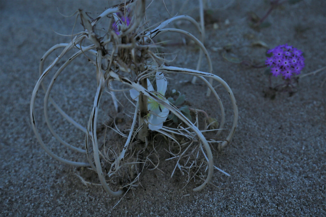 오늘의 목적지는 Anza Borego State Park의 남동쪽 Ocotillo Wells다. 드넓은 사막언저리 어딘가에 흰꽃이 만발한 사진을 친구가 찍어 보냈다 한다. 근성 있는 작가가 기회를 놓칠 리 없다. 당장 출발이다. 꽃 몇 포기를 찍으러 왕복 일곱 시간을 넘게 운전해 간다면 이해가 되려나. 이해하기 힘든 일이지만 그녀는 남의 이해를 구걸하지 않는다. 임무에 충실한 군인처럼 묵묵히 카메라에 담을 풍경만을 그리며 떠난다.