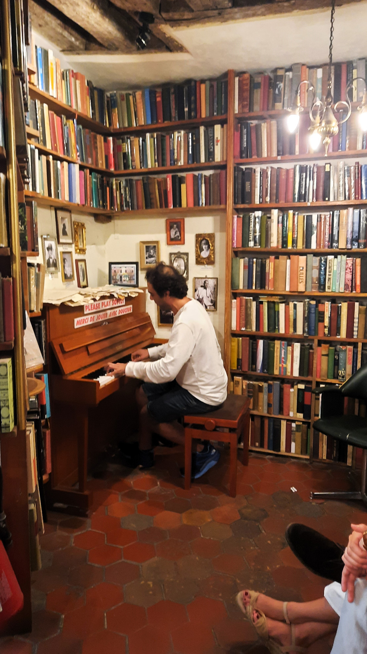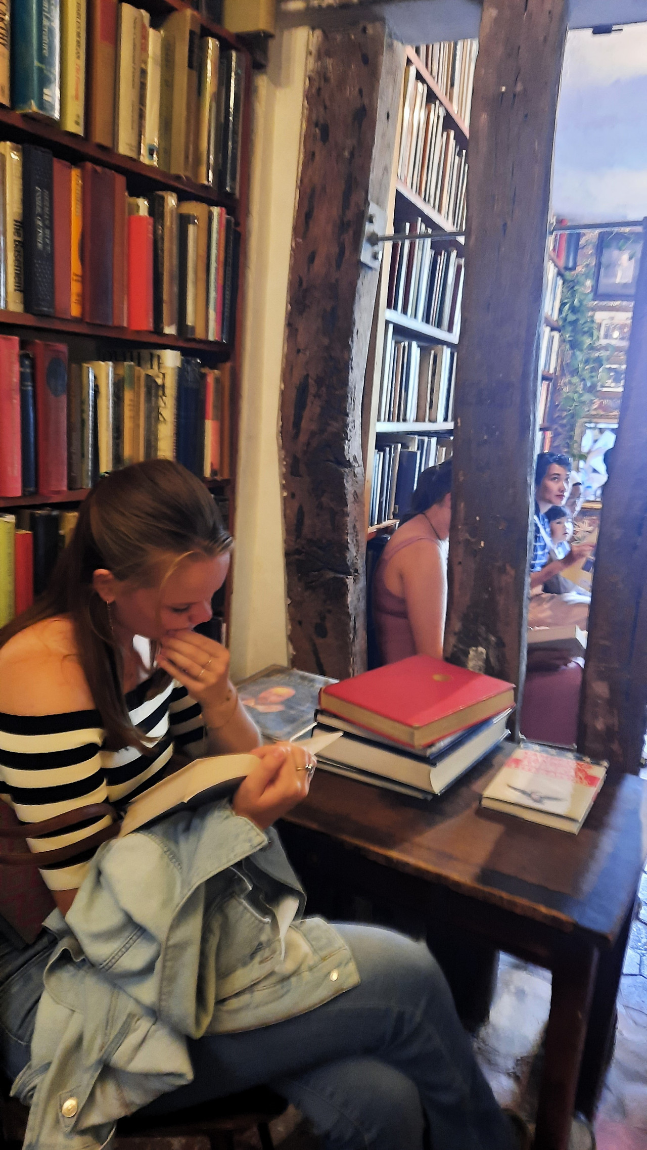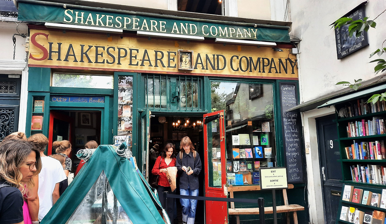 다리를 건너 Shakespear and company 서점을 찾았다. 1919년에 파리에 거주하던 미국인 출판업자인 실비아 비치가 윌리엄 셰익스피어의 희귀한 판본들을 판매하는 서점을 개점하면서 이 서점의 역사가 시작되었다. 영어 서적을 주로 판매해 파리에 거주하던 미국인과 영국인들이 주로 방문하였는데, 제임스 조이스와 어니스트 헤밍웨이, TS 엘리엇, 스캇 피츠제럴드 등이 이곳을 자주 찾았다. 유명한 문인들이 드나들며 서점에서 문학 토론의 장이 열리면서 인기를 끌었다. 책을 팔기도 하고 빌려주기도 했다 한다.