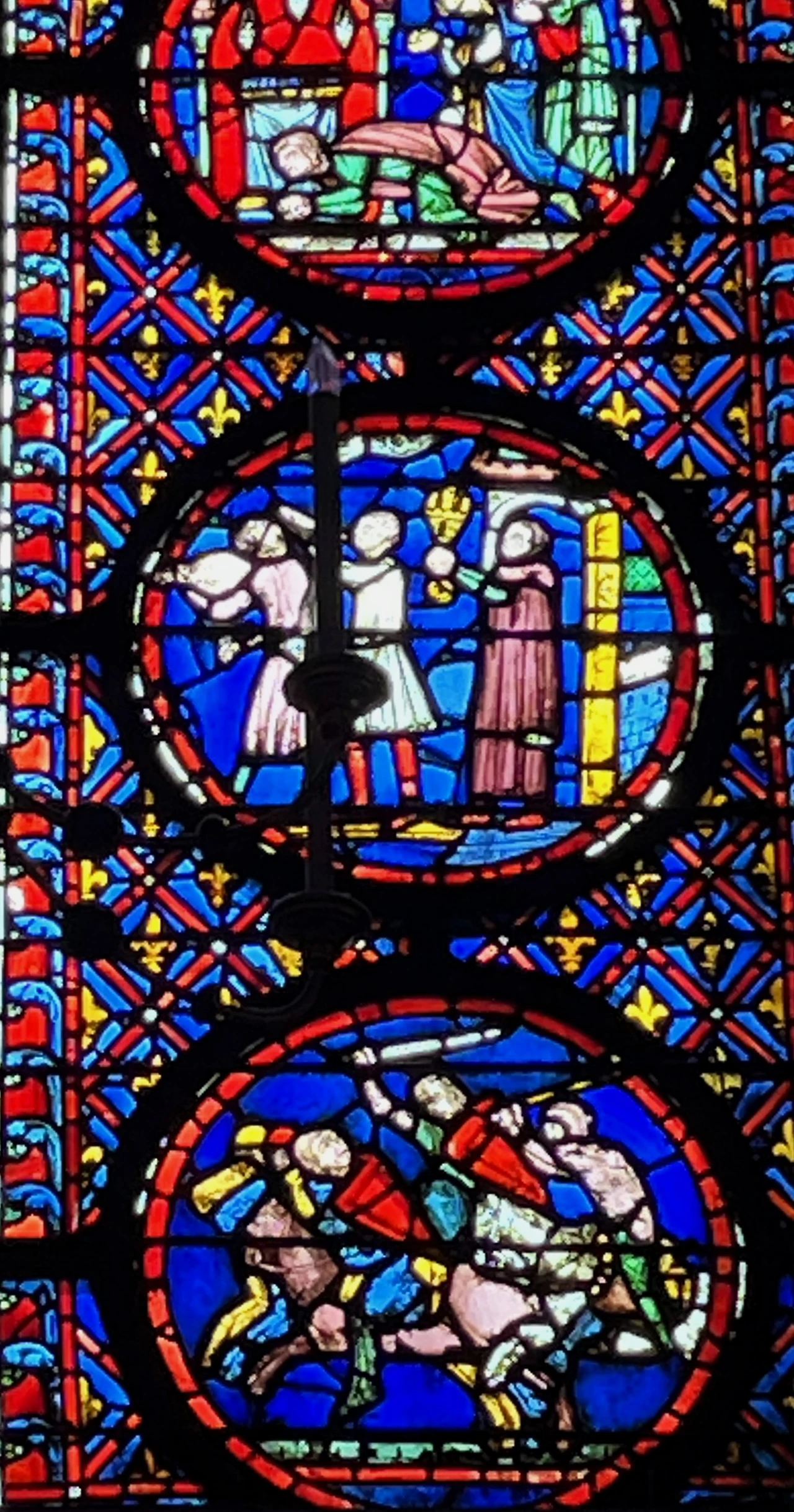 안에 들어서자 스테인드 글라스를 통해 들어오는 오색찬란한 빛의 잔치에 눈이 부셨다. 성전과 벽이 온통 스테인드 글라스로 장식되어 있었다. 구약 성경의 창세기부터 열왕기까지의 내용을 소재로 약 1천 여장의 성경이야기가 스테인드 글라스에 새겨져 있다. 성경 필사를 스테인드 글라스에 한 셈이다. 하느님을 경배하고 그분께 의탁하려는 인간의 간절함이 읽혔다. 그러나 한편으론 성유물을 비싼 값으로 매입해 소유함으로써 정치적 우세 優勢를 점유하려던 인간의 나약함이 또한 보였다.