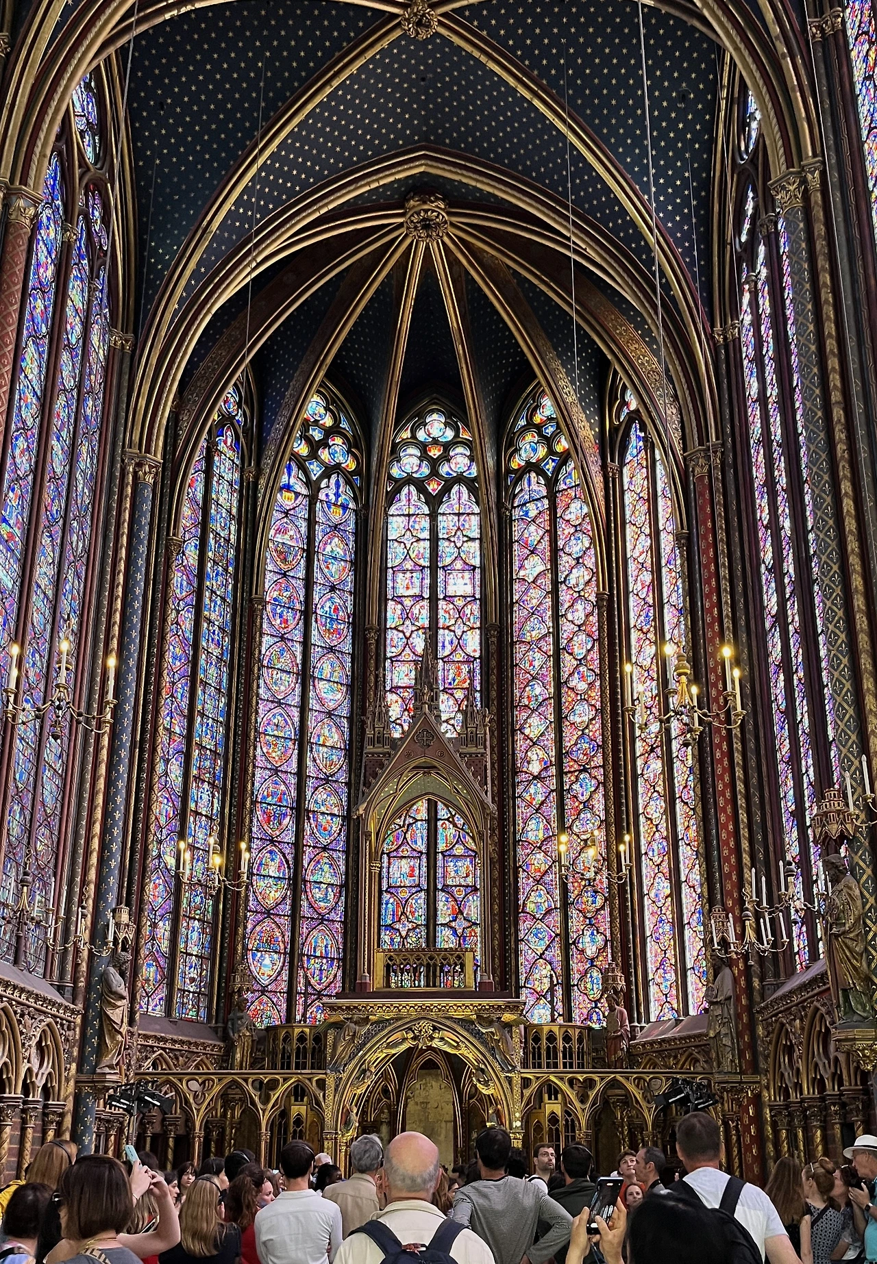 생트 샤펠 Saint Chapel은 14세기까지 프랑스의 왕들이 살았던 시테궁 안에 지어진 왕실 성당이었다. 루이 9세가 십자가 조각과 가시관 등 성유물들을 보관하기 위해 지었다. 이곳은 아름다운 스테인드 글라스로 유명하다. 온라인으로 티켓을 사서 가면 좋은데 그렇지 않으면 30분마다 입장을 시켜도 대기줄이 길다.