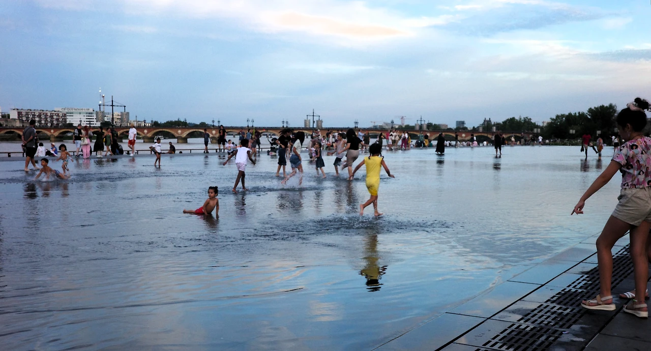 부르스 광장 바닥에서 샘물이 솟듯 물이 솟아 나오며 넓은 광장을 덮어갔다. 어른 아이 할 것 없이 맨발로 들어가 찰박대며 물놀이를 즐겼다. 웅장한 주변 건물이 바닥의 물에 비쳐 미러링 되면서 환상의 아름다움을 자아냈다. '물의 거울'이란 분수란다. 사진으로만 본 남미의 우유니호수 같았다. 밤하늘의 달과 별이, 지상의 화려한 불빛과 건물이 물의 거울에 담기며 하늘과 땅의 구분이 사라졌다. 아이들은 깔깔대며 달을 걷고 별을 잡았다. 연인과 속삭이며, 자전거를 타며, 친구들과 떠들며 사람들은 달빛에 취한 갸롱강의 여름밤을 즐겼다. 또 다른 프랑스의 모습이었다.