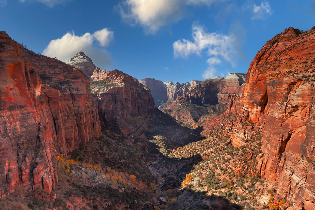 새벽녘 호텔방 문을 여니 사막의 아침공기가 차갑다. 오늘 출사지는 Zion Canyon국립공원이다. 수많은 후두들이 제각기 멋을 내며 솟아있는 브라이스 캐년이 화려한 여성을 닮았다면 웅장한 바위산으로 싸인 자이언 캐년은 우람한 근육을 가진 남성을 닮았다.