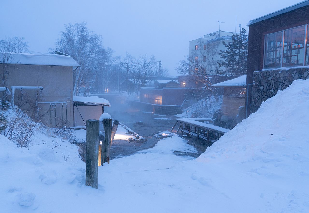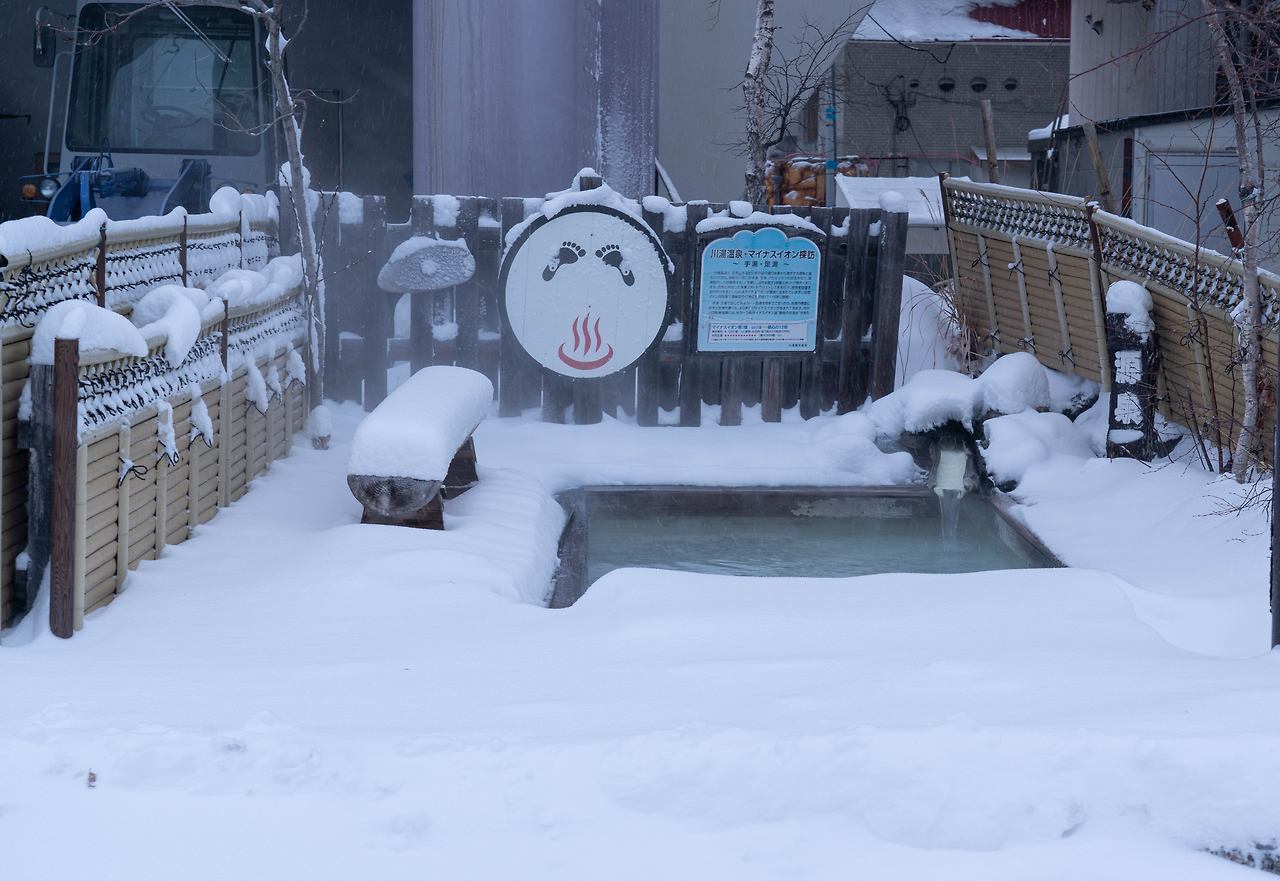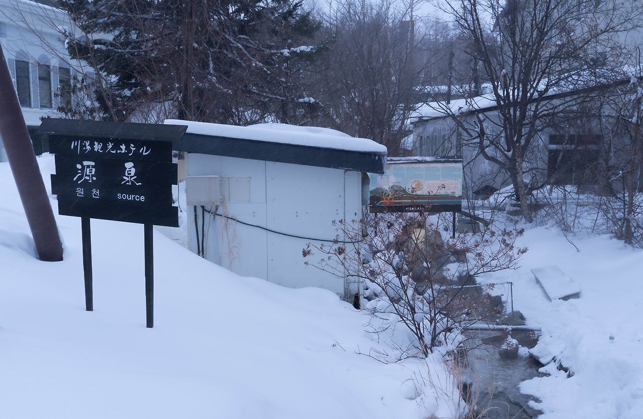 개울 한쪽에서 수증기가 몽글몽글 솟는다. 다가가보니 '원천'이란 팻말과 함께 '세계적으로 유명한 카와유온천'이라 쓰여있다. 온천샘이 솟아나는 곳이었다. 바깥세상의 날씨에 아랑곳없이 지구 속은 끓고 있다. 길가엔 친절하게도 족욕탕이 있다. 늦은 시각이 아니면 뜨거운 온천물에 발을 담그고 내리는 눈을 감상하련만.