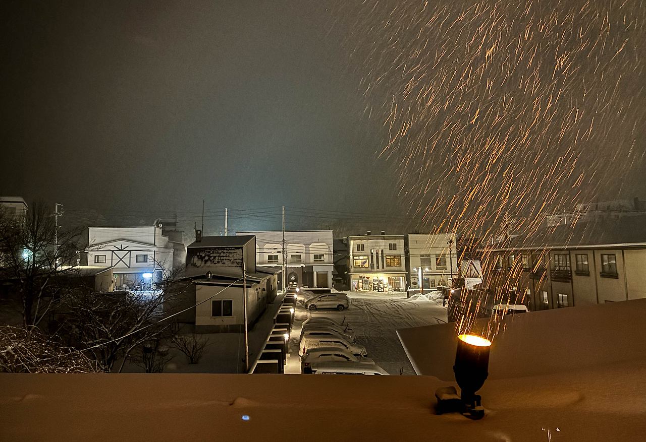 호텔방은 나즈막한 침대가 있는 침실 위쪽으로 일본식 테이블이 있는 다다미방이 연결되어 있었다. 테이블 앞에 앉으니 커다란 창으로 눈 내리는 바깥풍경이 펼쳐졌다. 눈 내리는 밤은 잠들기조차 아까웠다. 저렇게 하늘을 열어 눈을 퍼부어 주는데 어찌 잠을 청할 수 있으랴. 온천에 몸을 담그고 나니 곤한 몸에 졸음이 몰려왔으나 20여 년 만에 만나는 눈 내리는 밤을 그냥 지나기 아쉬워 깨어 앉았다.