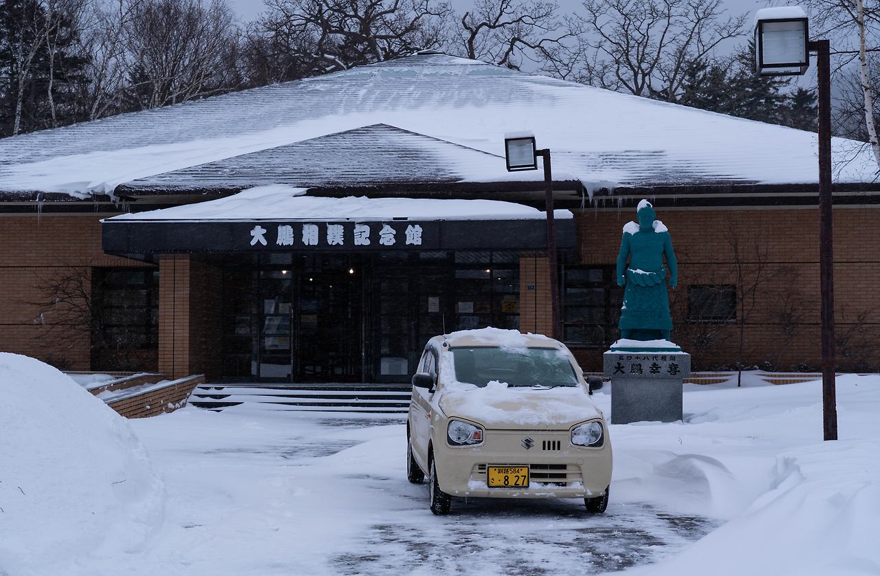 눈은 조용히 쉼 없이 내려 쌓였다. 순백의 세상에 발을 딛기가 조심스럽다. 호텔을 나와 옆길로 들어서니 가겟집 아저씨가 장사를 일찌감치 접고 가게문을 닫고 있다. 이런 눈보라 속에 찾아올 손님이 있을 것 같지 않은데 부지런히 문을 열었다 닫는다. 한 남자가 삽을 들고 집 앞 눈을 치우고 있다. 그 두 사람을 본 후로 길에서 사람을 볼 수 없었다. 눈더미가 성벽 같이 쌓인 골목을 지나 큰길로 나왔다. 버스가 손님 없는 정거장에 그저 한참 섰다가 떠났다. 그래도 두서너 명의 승객이 버스에 타고 있다. 이 험한 날씨에도 사람들은 어딘가로 떠나고 온다. 일찌감치 문을 닫은 스모박물관 앞에 선 동상이 눈을 고스란히 맞으며 서있다. 눈바람에 숲의 나무들이 소리를 지르고 있었다.