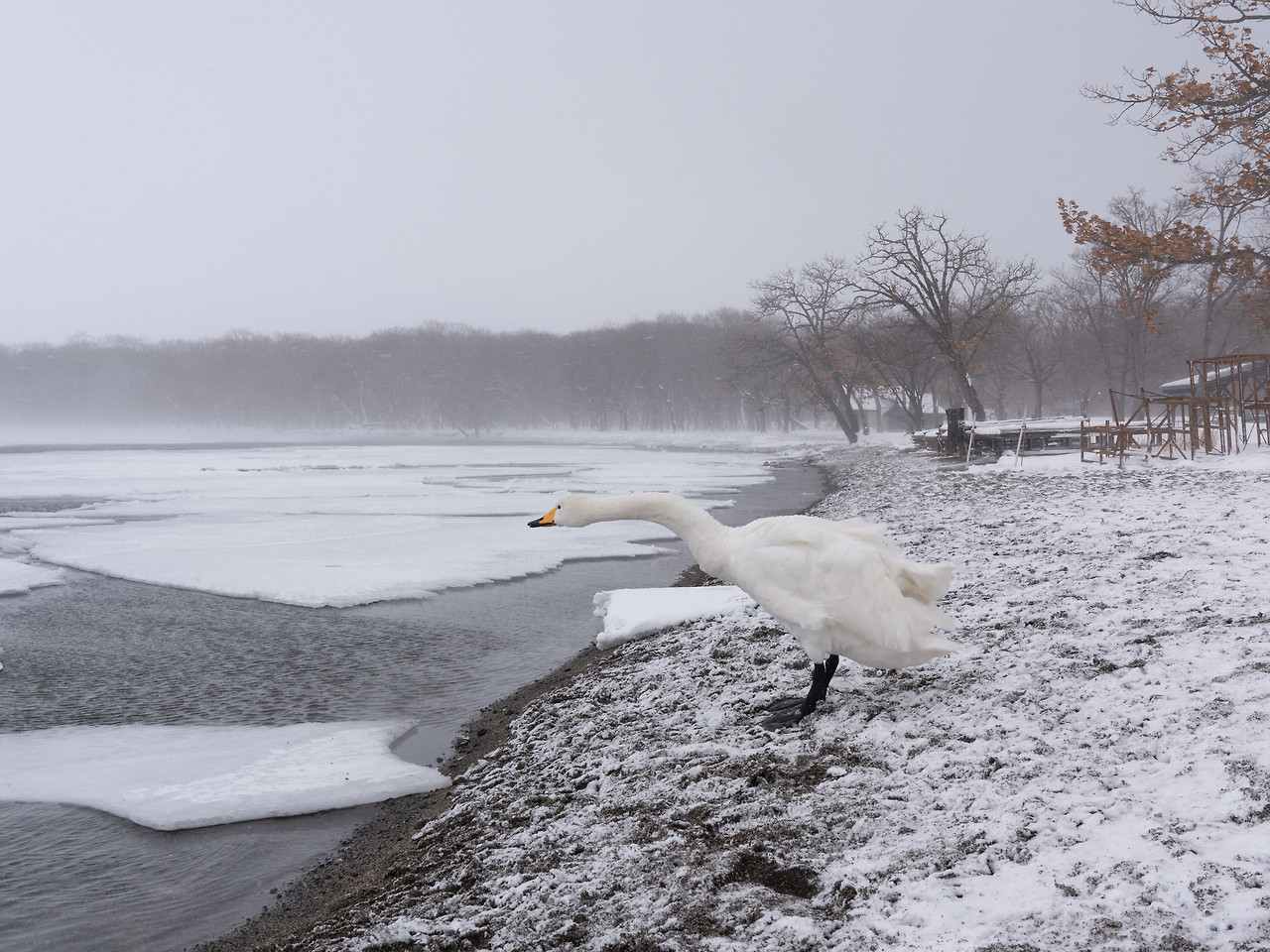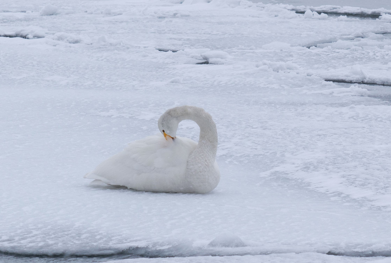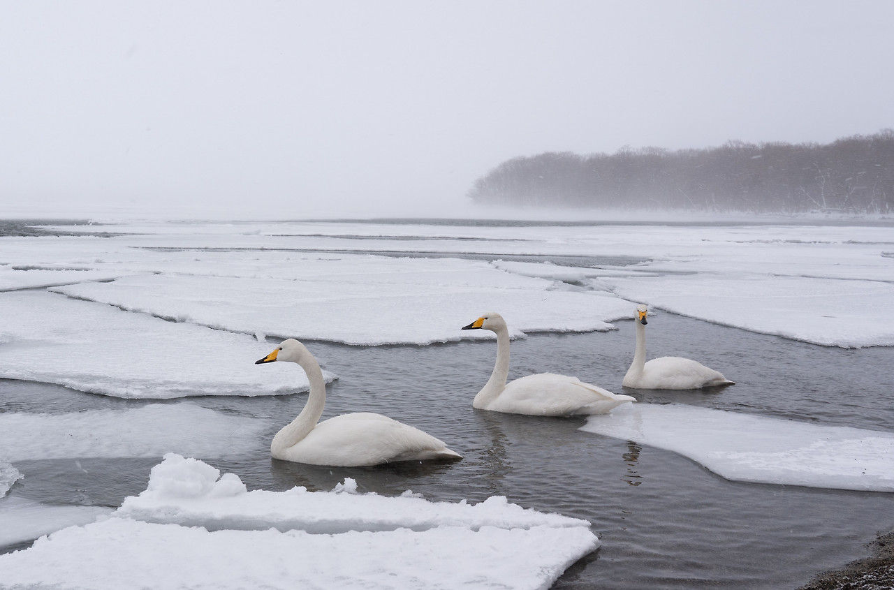 호텔서 30분 거리의 쿠샤로 호수는 어제보다 추위가 더 맹렬했다. 눈보라와 추위에 호수의 빙판은 점점 불어나 백조가 떠다닐 공간을 잠식하고 있었다. 그나마 호수 언저리 실오라기 같이 남은 물 위에 백조들이 빽빽이 모여 있다. 겨울바람은 그 실낱 같은 희망마저 모두 얼려버릴 기세다. 이런 혹한 속에 밤을 지새우다니. 백조는 이따금 호수 끝자락까지 이어지는 빙판 위로 날아올랐다가 이내 물가를 찾아 머리를 날갯죽지에 넣고 웅크렸다. 서로 끌어안고 체온을 나누면 좋으련만 삶은 결국 스스로 이겨내는 것임을 아는 건지 제각기의 방법으로 겨울을 버텨내고 있다. 아직도 멀게 남은 겨울을 살아내야 한다. 그들의 겨울나기의 무게가 느껴져 발길 돌리는 마음이 무거웠다.