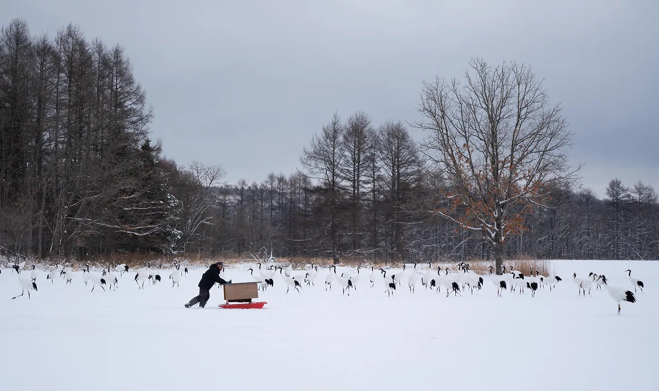 이 지역은 과거에 학이 많이 살던 곳이었는데 일본 메이지 유신 이후 습지개발과 무차별 낚시로 개체수가 급격히 줄어 멸종된 걸로 알았다. 그러나 어느 해 몇 마리가 다시 목격되어 인근 아칸 Akan 타운과 츠루이Tsurui 마을이 학 보호에 발 벗고 나서면서 이후 약 1500마리로 회복되었다 한다. 혹한과 눈으로 먹이가 귀한 11월에서 3월 사이에 츠루이 학 보호구역에서 먹이를 제공함으로써 학들이 점점 많이 찾아오게 되었다. 현 기후나 환경 조건하에선 겨울 모이 제공이 없다면 학은 십 분의 일로 감소할 거라 한다.