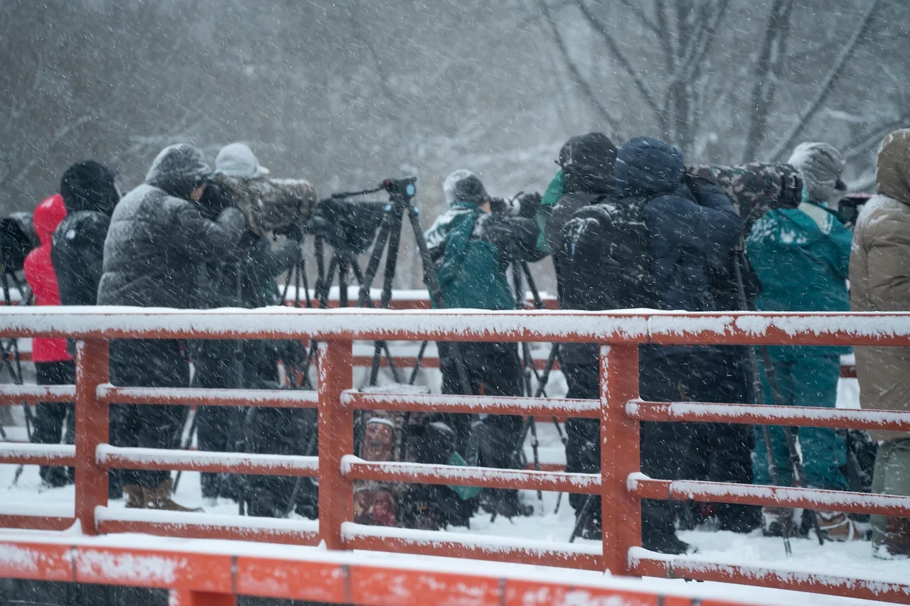 새벽 4시, 학을 만나러 츠루이로 향했다. 추우니 방한할 건 모두 갖춰 최상위 보온을 하고 나오라 어젯밤 당부했는데 예상보다 기온이 떨어지지 않아 다행이다. 스츠리강에 도착하니 벌써 차량 두 대가 먼저 와있다. 오토와 다리 위에 이미 여러 개의 삼각대가 자리를 잡고 있었다. 순간을 담는 사진작업은 부지런히 준비하지 않으면 기회를 놓치게 된다. 겨우 자리를 비집고 삼각대를 세웠다. 눈발이 휘날리기 시작했다.