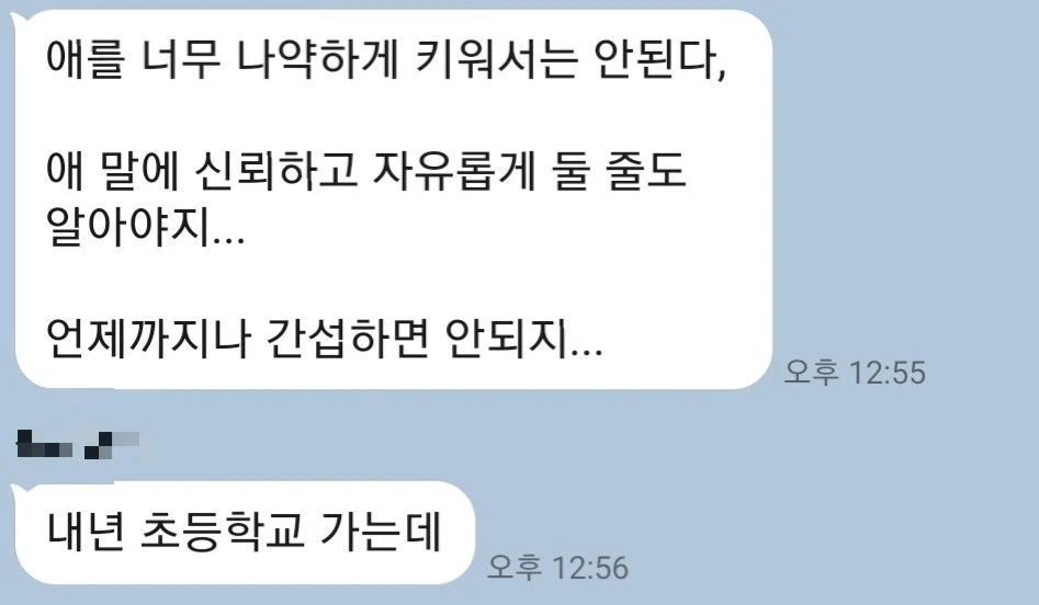 "오빠, 아이에게 자유를 주는 건 좋지만.. 단계별로 하자. 제발. 블라블라 블라..."