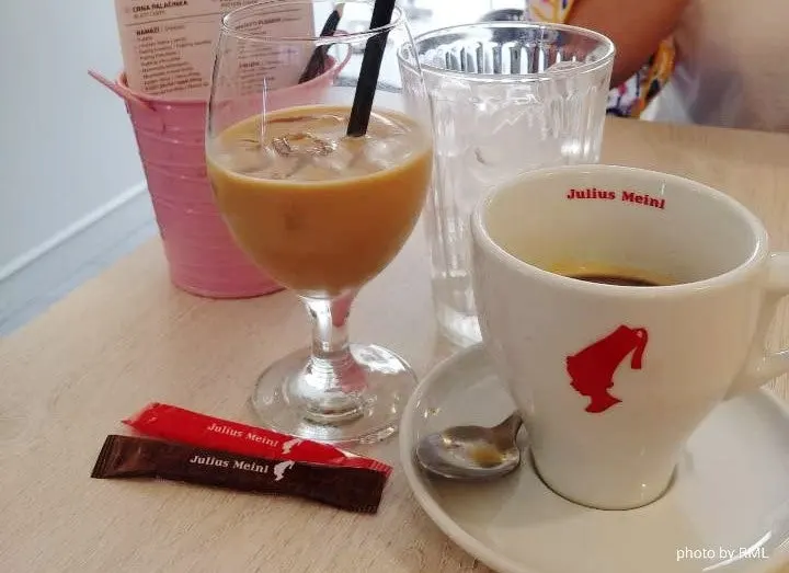 두툼한 팬케이크에 진득한 캐러멜소스와 땅콩가루. 달콤하고 고소한 맛, 부드럽고 퐁신퐁신한 식감이 기대 이상으로 맛있었다. 아이스커피라는 개념이 거의 없는 유럽에서 생소하게도 '아이스라테'를 주문했는데, 정말 아이스라테가 나와서 놀랐다. ㅎㅎㅎ 게다가 에스프레소와 우유, 얼음의 조합이 싱겁지도 밍밍하지도 않고 딱 먹기 좋아서 기분까지 좋았던 카페에서의 휴식.