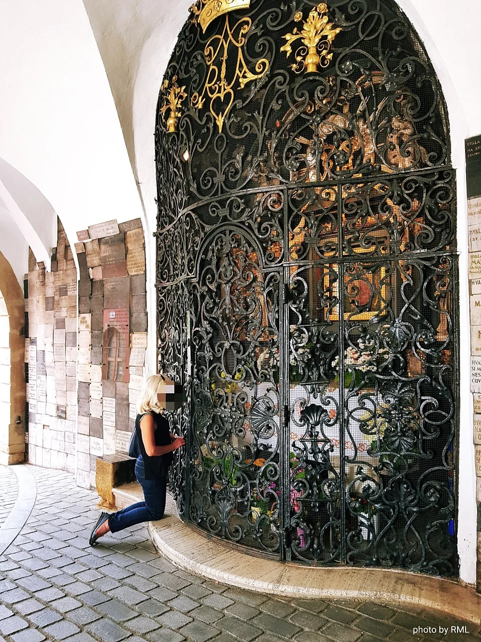 스톤게이트(stone gate). 자그레브 시내에 있는 성문이자, 유명한 성지순례지다. 언덕길에 있는 계단을 올라 왼쪽으로 돌면 성문이 보인다. 입구 바로 왼편에 성모님 성화가 모셔져 있다.