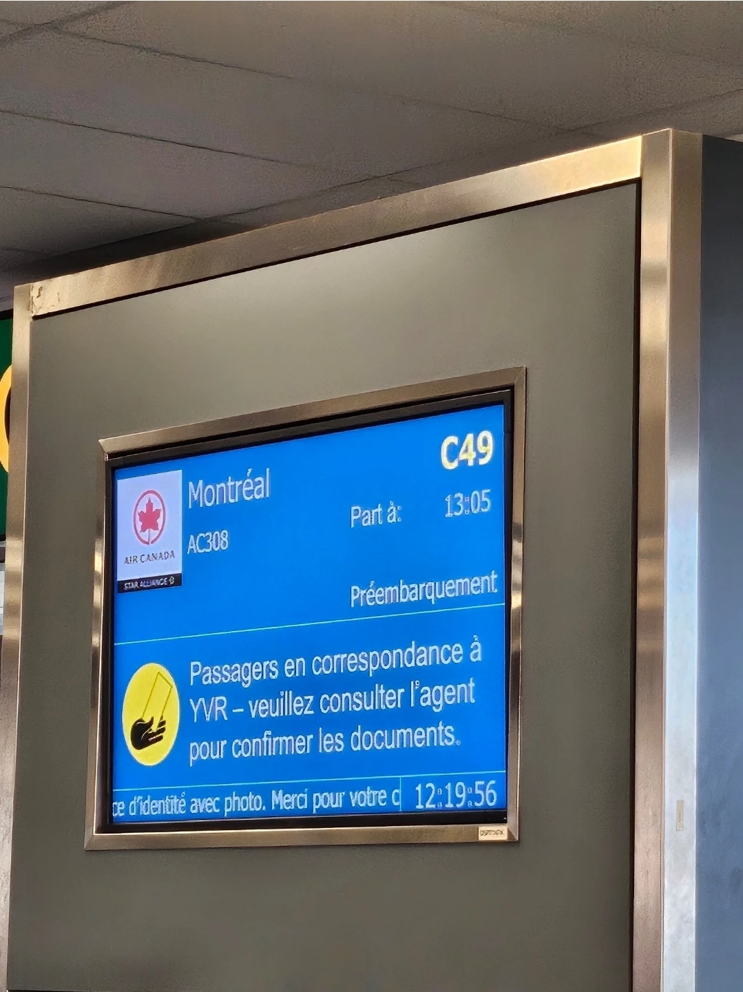 비행기로 밴쿠버에서 몬트리올까지 직항으로 5시간 소요된다. 요즘 기온이상으로 난기류가 심해져서 터뷸런스가 많다고 한다.
